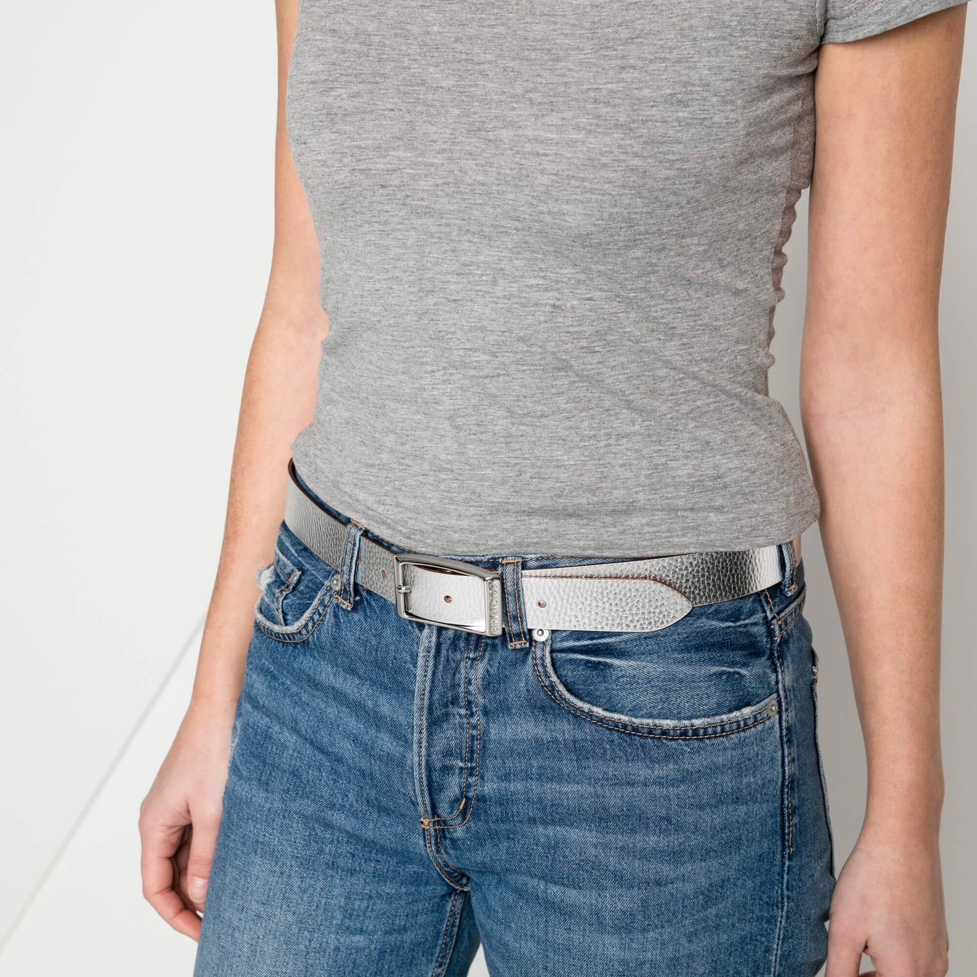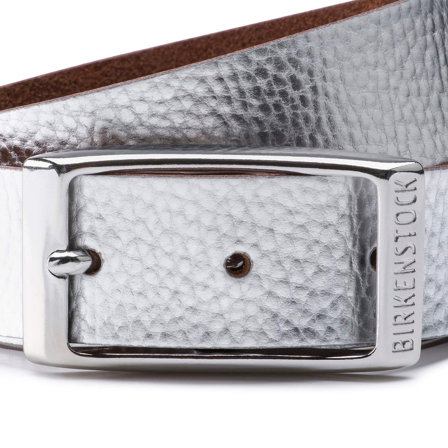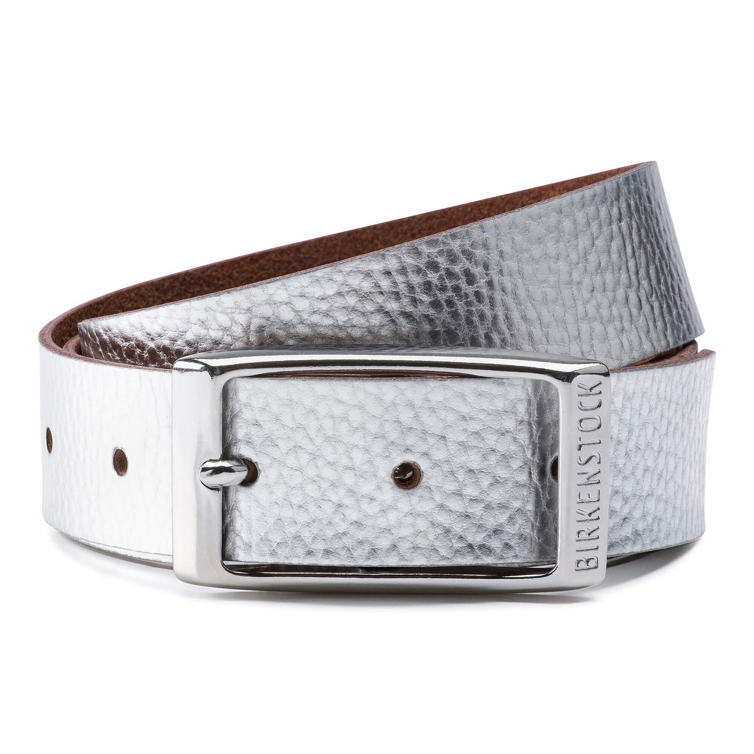 The Illinois is a stunning seasonal belt made of premium-quality full-grain leather. It features a special coated metallic surface that sparkles and shines and clearly points to our bestselling sandals with a similar look. The belt is 30mm wide, and the high-gloss, polished buckle in a matching color with an embossed BIRKENSTOCK logo looks elegant and refined.