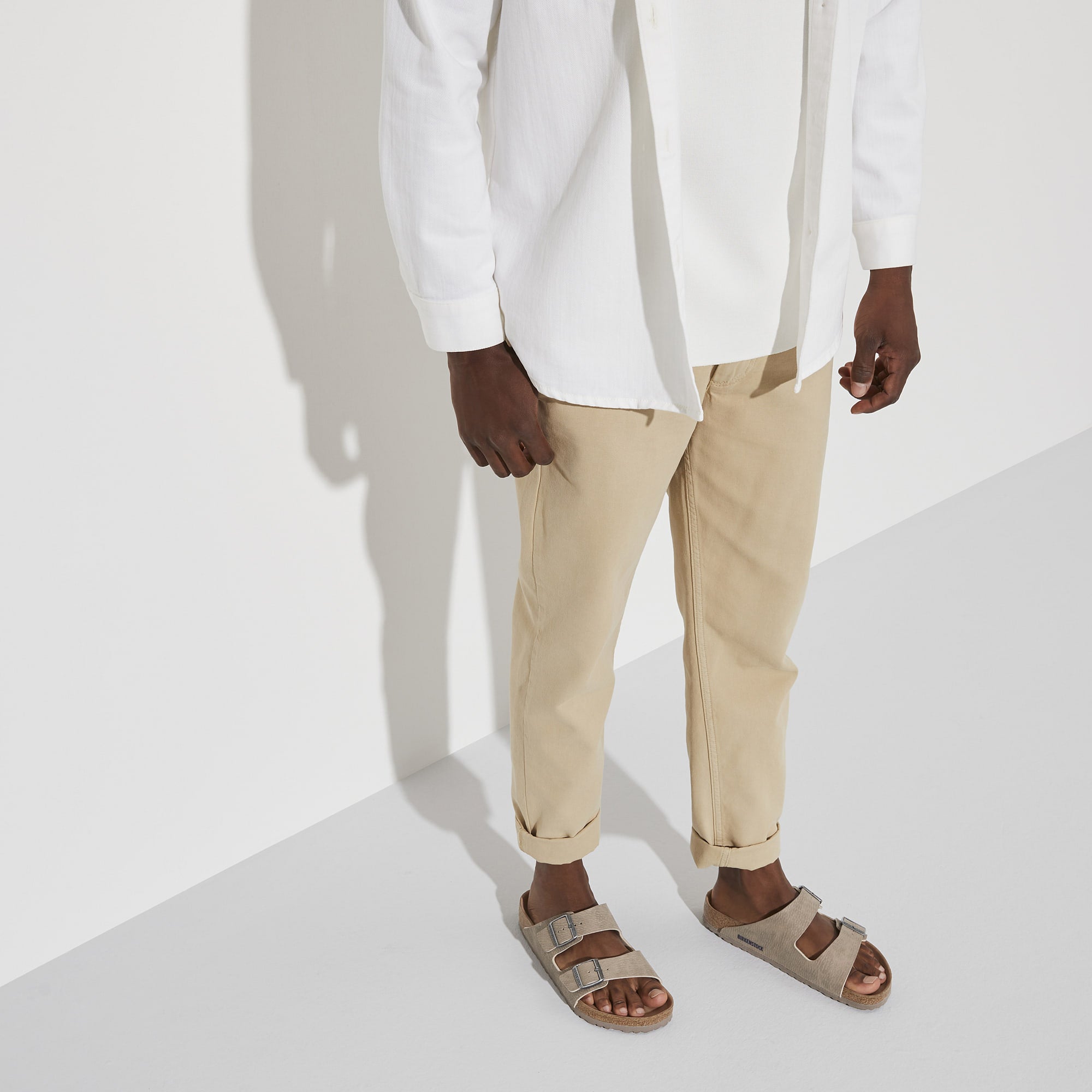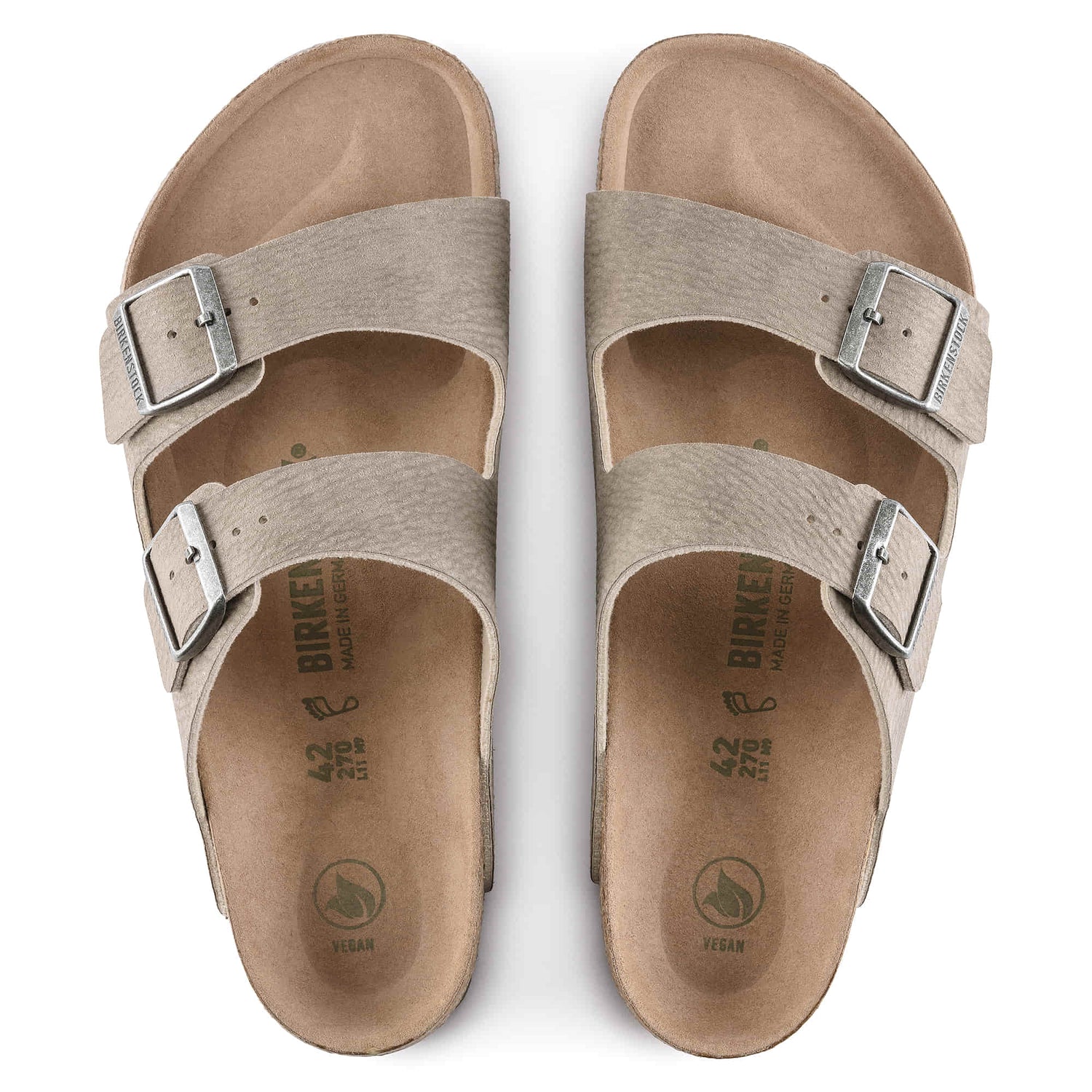 The BIRKENSTOCK Arizona is a genuine classic that has been delighting both men and women with its timeless design for decades. The color-coordinated outsole rounds off the shoe's look of sophistication. This classic model has been given an update in a new material, with a vegan version now available. It is entirely free of animal products, as verified by independent testing laboratories. The upper is made from skin-friendly microfiber. The sandal boasts sophisticated material use with a matte finish that's reminiscent of natural leather while nevertheless being 100% vegan.