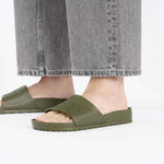 Birkenstock's EVA footbed is designed to provide a more flexible and lightweight alternative to the traditional cork-latex footbed. EVA footbeds are water-resistant and can be easier to clean.