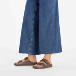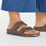 Birkenstock's EVA footbed is designed to provide a more flexible and lightweight alternative to the traditional cork-latex footbed. EVA footbeds are water-resistant and can be easier to clean.