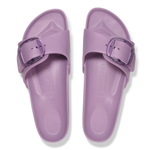This is a new and modern interpretation of the BIRKENSTOCK classic Madrid. This version features our popular Big Buckle made from a stainless synthetic material and makes an impression with its durability and minimalist design. Modeled on the cork sandal, it is made from the ultra-lightweight and highly flexible synthetic material EVA. The high-quality, odor-neutral EVA has been tested for harmful substances and combines numerous positive attributes: it is very light, highly elastic, shock-absorbent, water-resistant, and skin-friendly.