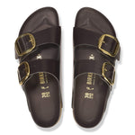 The BIRKENSTOCK Arizona is a genuine classic that has been delighting both men and women for decades. This simple sandal with two straps stands for timeless design and has long held cult status thanks to its comfort factor. The Big Buckle Hammered version is unmistakable with its large, elegant pin buckles and hand-hammered design. An impressive and distinctive eye-catcher on this otherwise understated sandal. The upper is made from high-quality natural leather with a shiny patent coating.