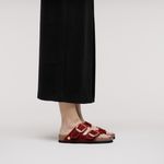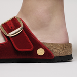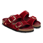 The BIRKENSTOCK Arizona is a genuine classic that has been delighting both men and women for decades. This simple sandal with two straps stands for timeless design and has long held cult status thanks to its comfort factor. This version brings two popular designs together. It is made of fine velvet and boasts a big, elegant pin buckle. The exquisite footbed is fully lined with soft piumato leather, making it exceptionally comfortable.