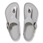 The BIRKENSTOCK Gizeh is a genuine classic that combines optimum grip with minimalist, fashionable design. The Big Buckle version features a large, elegant pin buckle. The semi-exquisite footbed is fully lined with soft piumato leather, making it exceptionally comfortable. The upper is made from high-quality natural leather with a shiny patent coating.