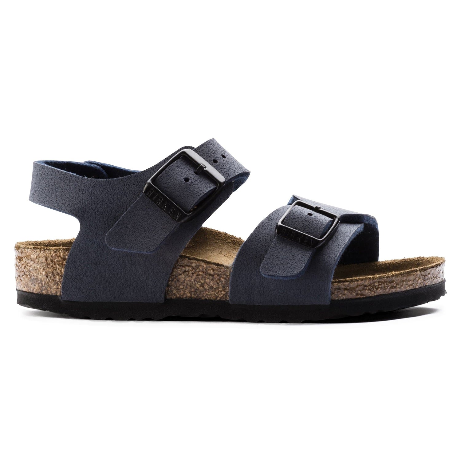 The BIRKENSTOCK New York is the perfect sandal for kids because its wide straps keep it securely on the foot even during rough-and-tumble play. When play gets heated, the cut-out sections keep things light and airy. The upper is made from the skin-friendly, hard-wearing synthetic material Birko-Flor® in a sophisticated nubuck look which boasts a texture and color that could almost be mistaken for real leather.