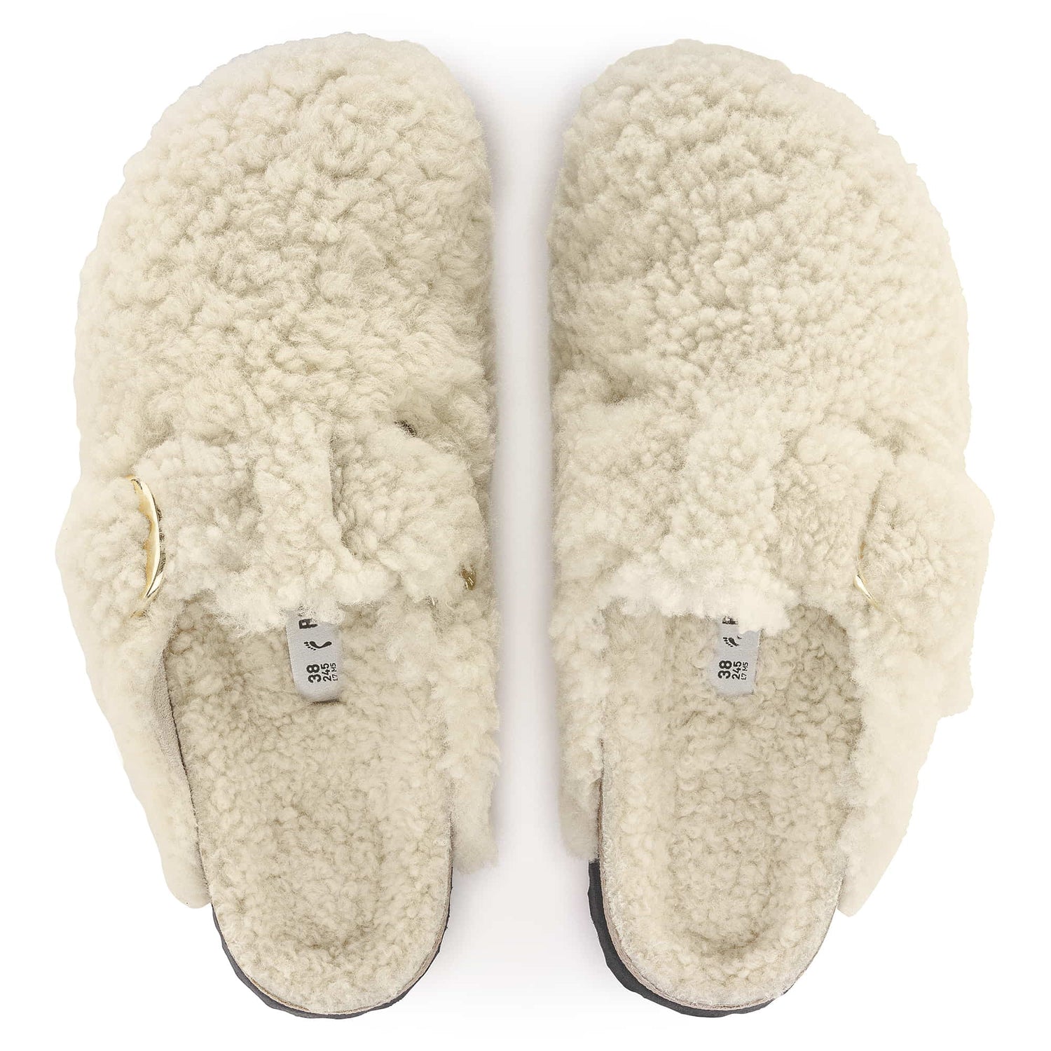 The BIRKENSTOCK Boston clog is a veritable classic that can easily be worn all year round. This version comes with a warm, teddy-style lambskin padding and a big, elegant pin buckle. The upper is made from soft teddy lambskin.