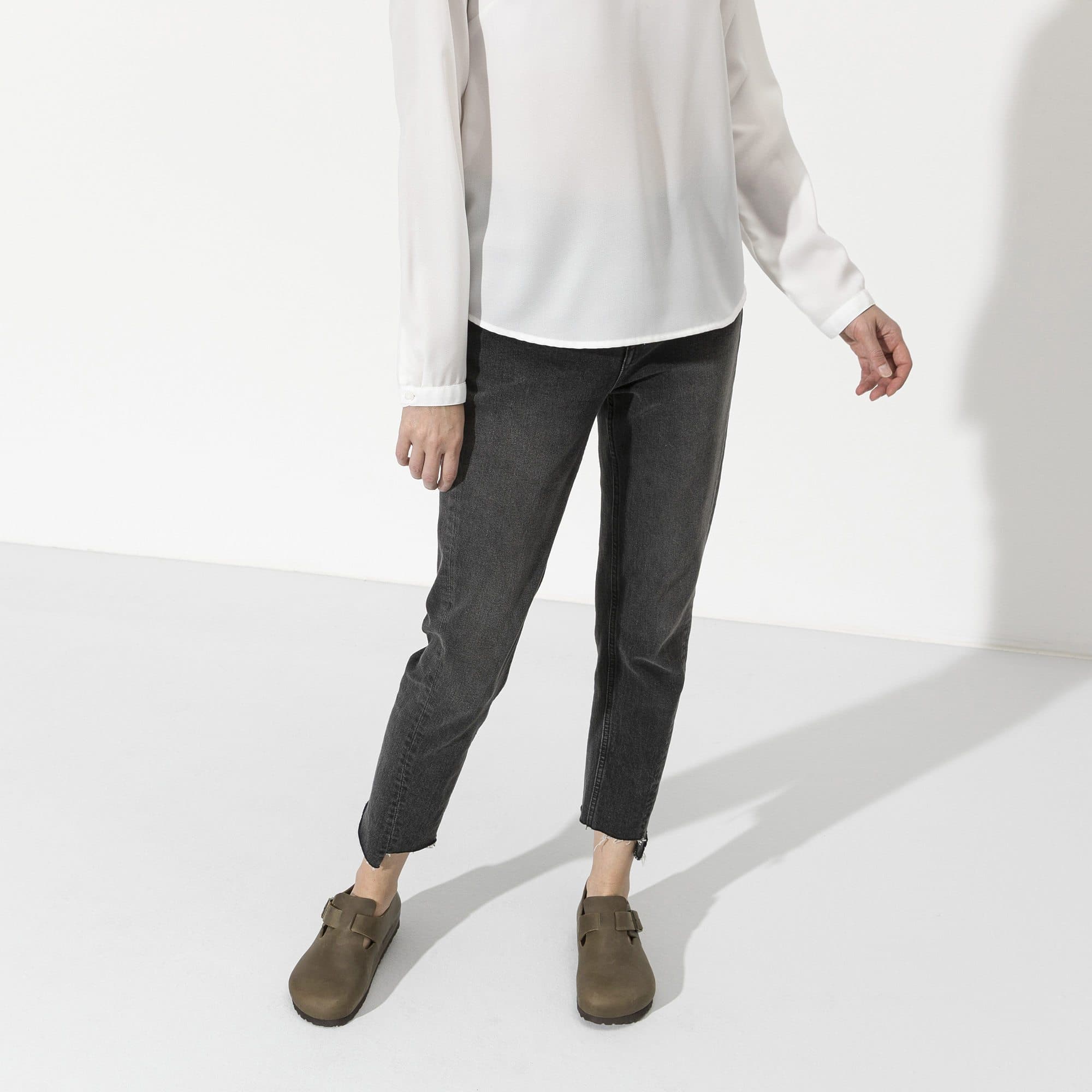 Oiled leather can be recognized by its untreated surface. BIRKENSTOCK purposely does not treat surface grains and other characteristic features. BIRKENSTOCK uses sturdy leather with a thickness of 2.8 to 3.2 millimeters as upper material.