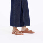 Birkenstock's EVA footbed is designed to provide a more flexible and lightweight alternative to the traditional cork-latex footbed. EVA footbeds are water-resistant and can be easier to clean.