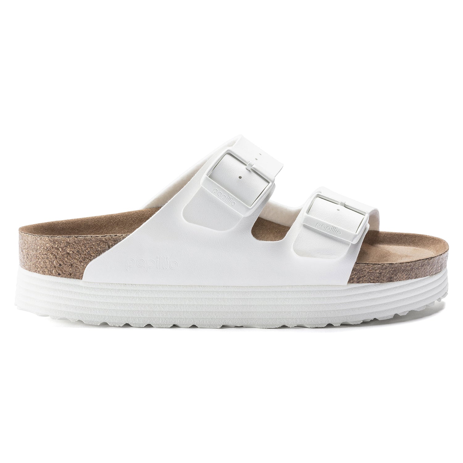 The BIRKENSTOCK Arizona is a genuine classic with its timeless design. Here, Papillio presents the two-strap sandal with a trendy platform sole. This popular sandal has also been given an update in new vegan materials. Shown in Birko-Flor.
