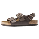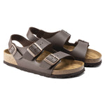 The BIRKENSTOCK Milano guarantees maximum grip and gives the feet stability in any movement scenario. This is thanks to the slightly more compact upper with two straps and the wide backstrap. The upper is made from the skin-friendly, hard-wearing synthetic material Birko-Flor®.