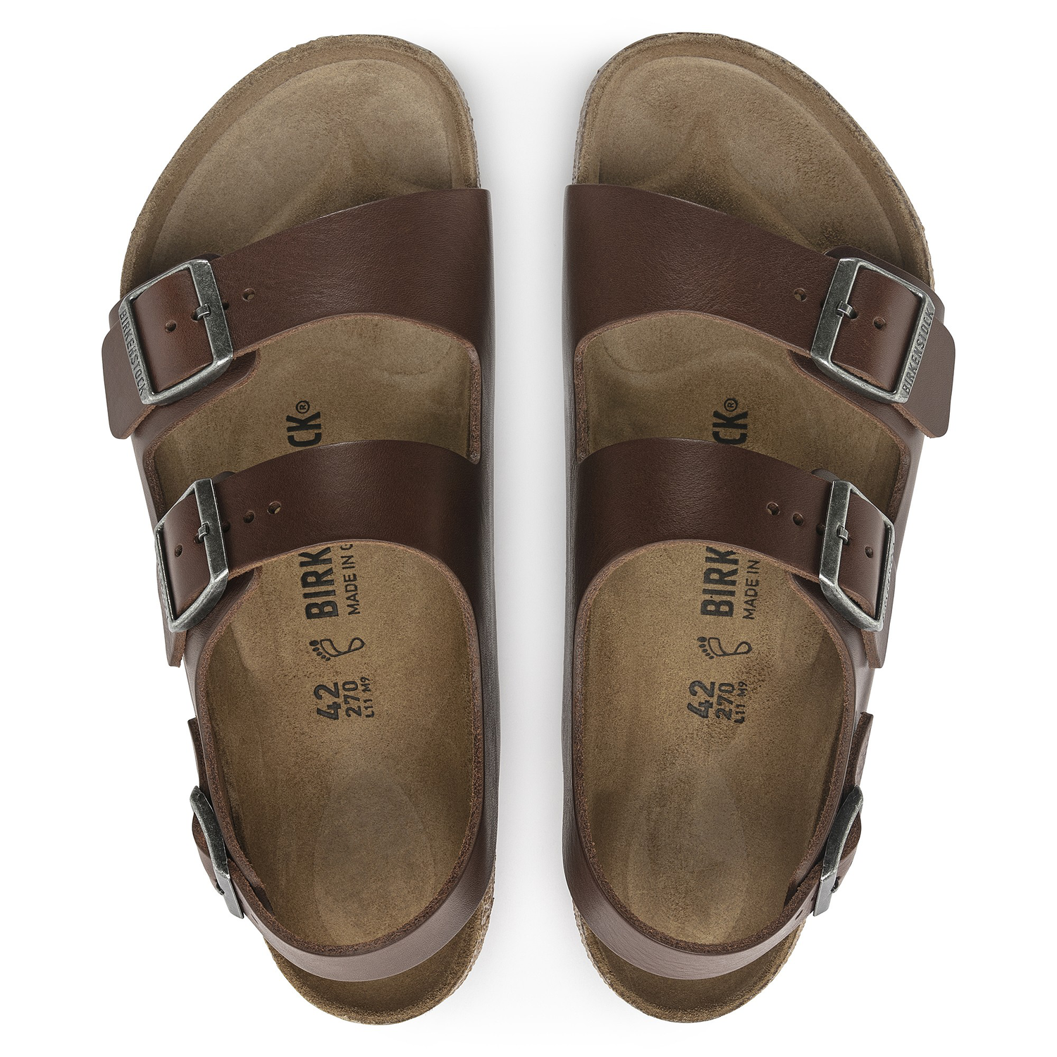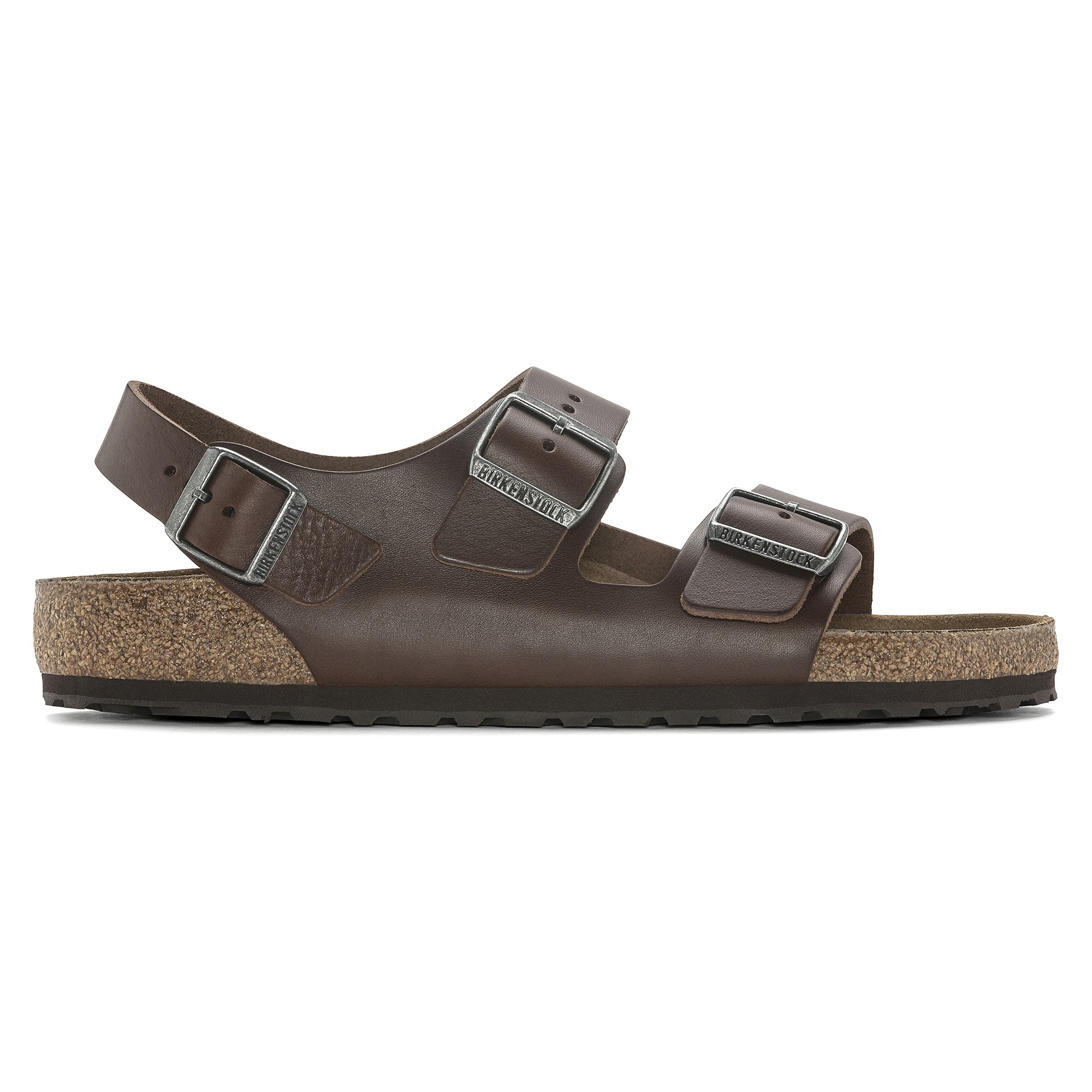 The BIRKENSTOCK Milano guarantees maximum grip and gives the feet stability during all activities. This is thanks to the slightly more compact upper with two straps and the wide ankle strap. This version revives the traditions of leather goods manufacturers with its look thanks to the surface texture of the high-quality, soft aniline leather. With its two components, the sole guarantees stability and comfort. It comprises a cushioning midsole made from EVA and an outsole made from genuine rubber.