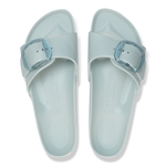 This is a new and modern interpretation of the BIRKENSTOCK classic Madrid. This version features our popular Big Buckle made from a stainless synthetic material and makes an impression with its durability and minimalist design. Modeled on the cork sandal, it is made from the ultra-lightweight and highly flexible synthetic material EVA. The high-quality, odor-neutral EVA has been tested for harmful substances and combines numerous positive attributes: it is very light, highly elastic, shock-absorbent, water-resistant, and skin-friendly.