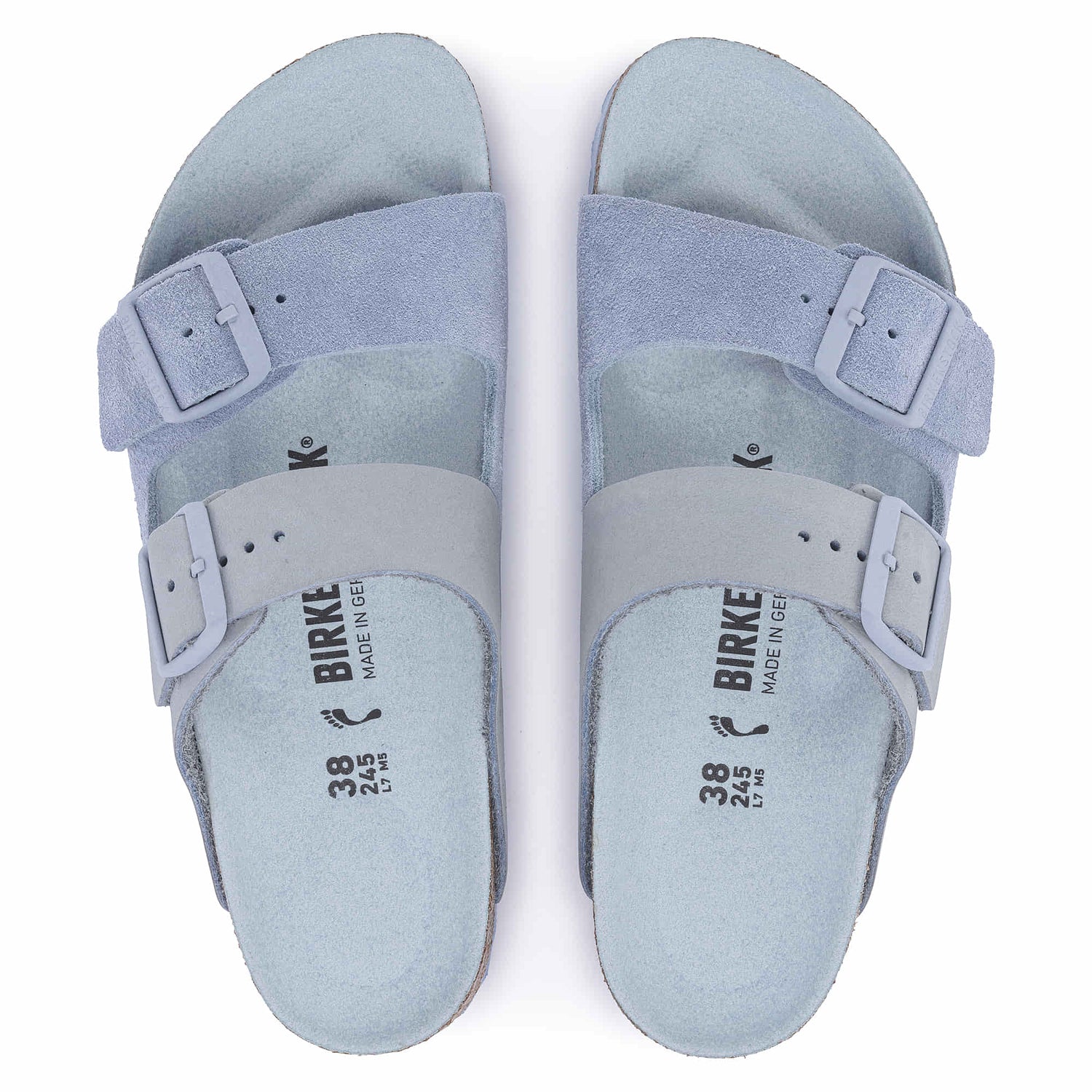 The BIRKENSTOCK Arizona is a genuine classic that has been delighting both men and women with its timeless design for decades. This version was inspired by color-blocking but instead of colors, this monochrome style plays with different materials. The upper is made from high-quality nubuck leather in combination with soft suede. The color-coordinated buckles with a textile feel and a matte design are additional eye-catchers.