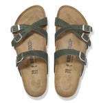 The BIRKENSTOCK Franca is a jaunty sandal with slim cross-over straps. The impressive combination of design and wearability will see fashion-conscious women through the day with elegance and comfort. The upper is made from extra thick, oiled nubuck leather and features an open-selvage finish.