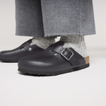 The BIRKENSTOCK Boston is a veritable classic that can easily be worn all year round. It has a legendary status thanks to its sophisticated, individually adjustable design. This version revives the traditions of leather goods manufacturers with its look. This is possible thanks to the surface texture of the high-quality, soft aniline leather. The Wire Buckle is a real eye-catcher and adds a touch of elegance to every shoe.
