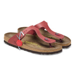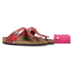 The BIRKENSTOCK Gizeh is a genuine classic and a stylish all-rounder. Our elegant thong sandal combines optimum grip with minimalist, fashionable design. We are now giving this popular classic the opportunity to show off its original design in our anniversary collection. With its buckles, the footbed stamp, the outsole, and the packaging, the sandal replicates the 1983 original and exudes veritable retro flair. The upper is made from soft, oiled natural leather.