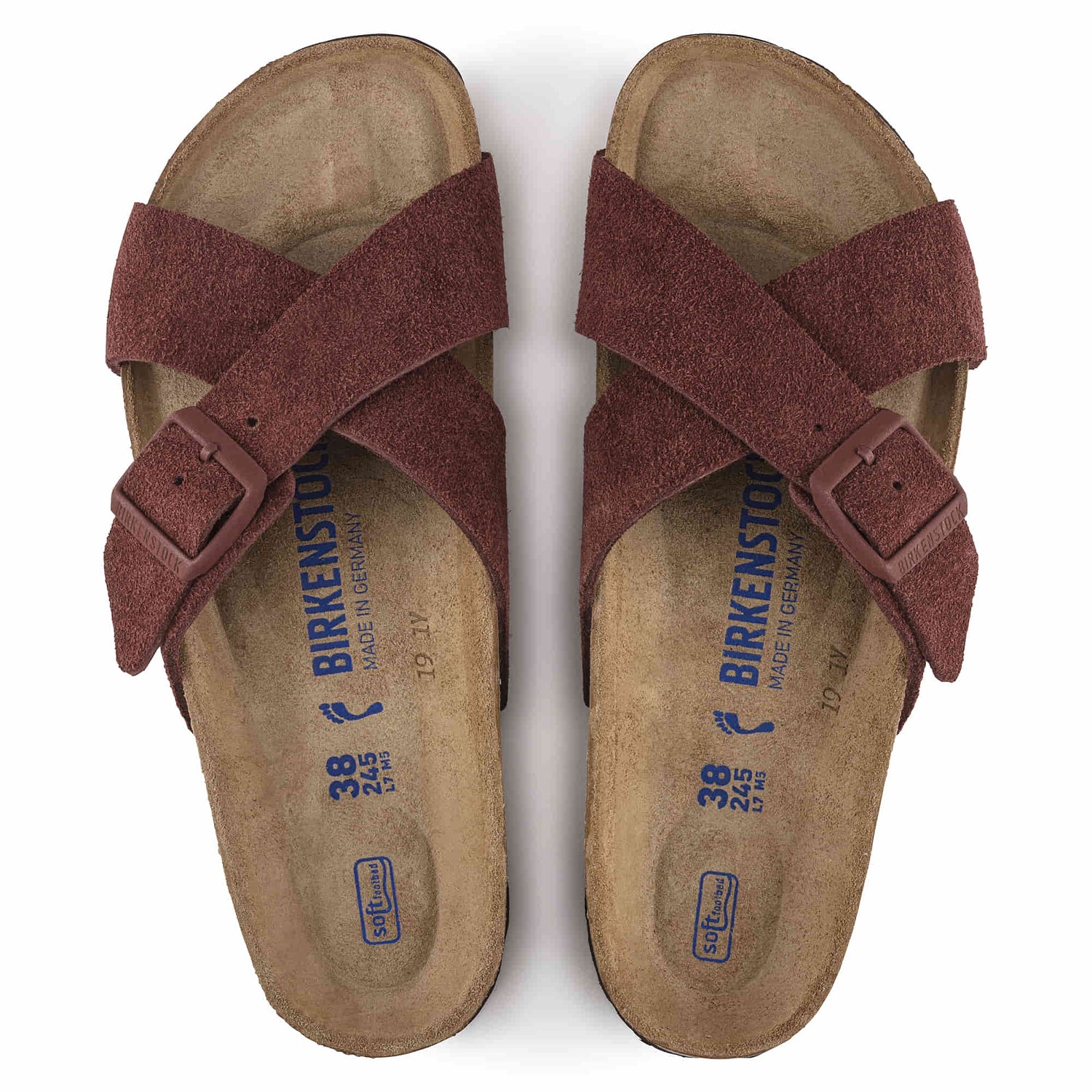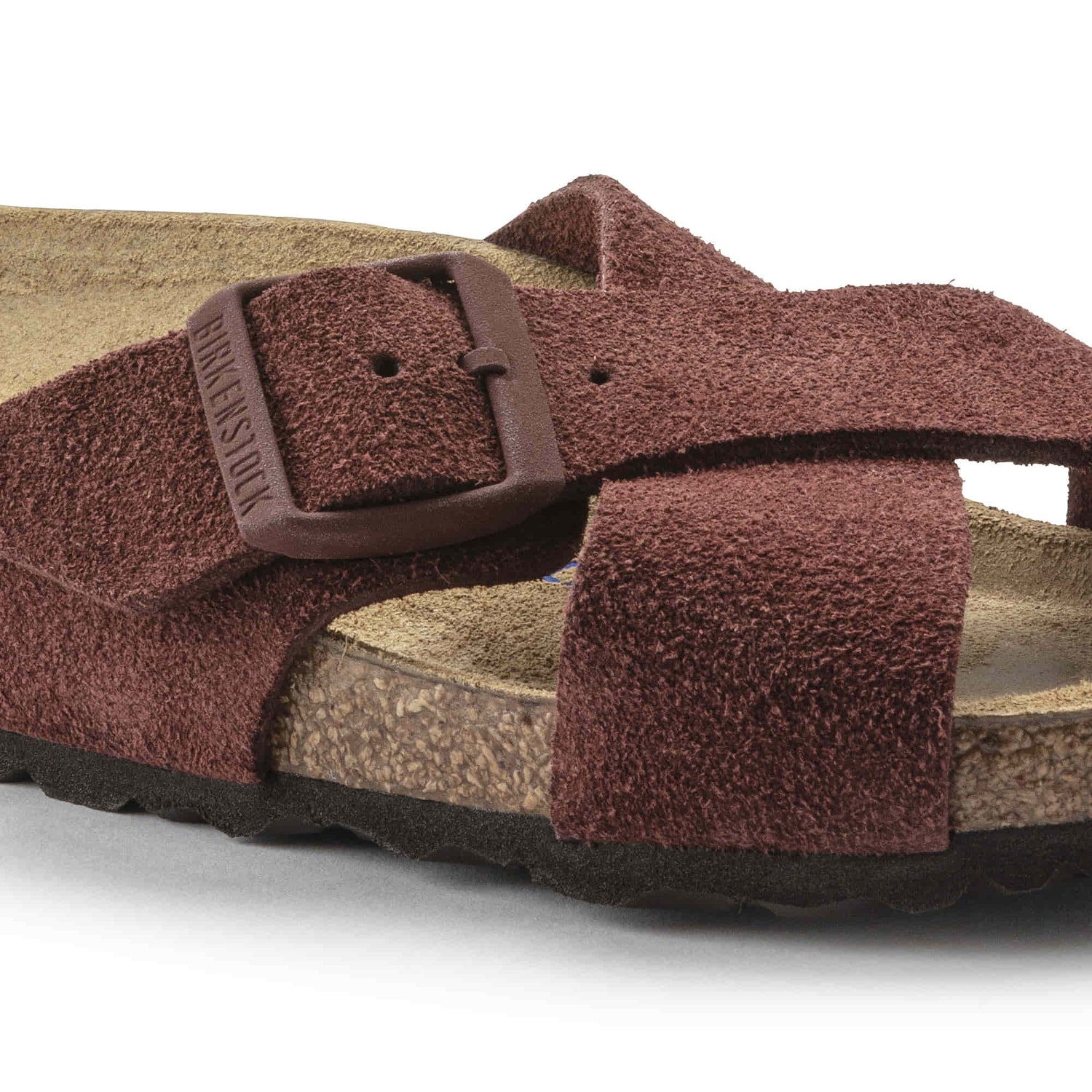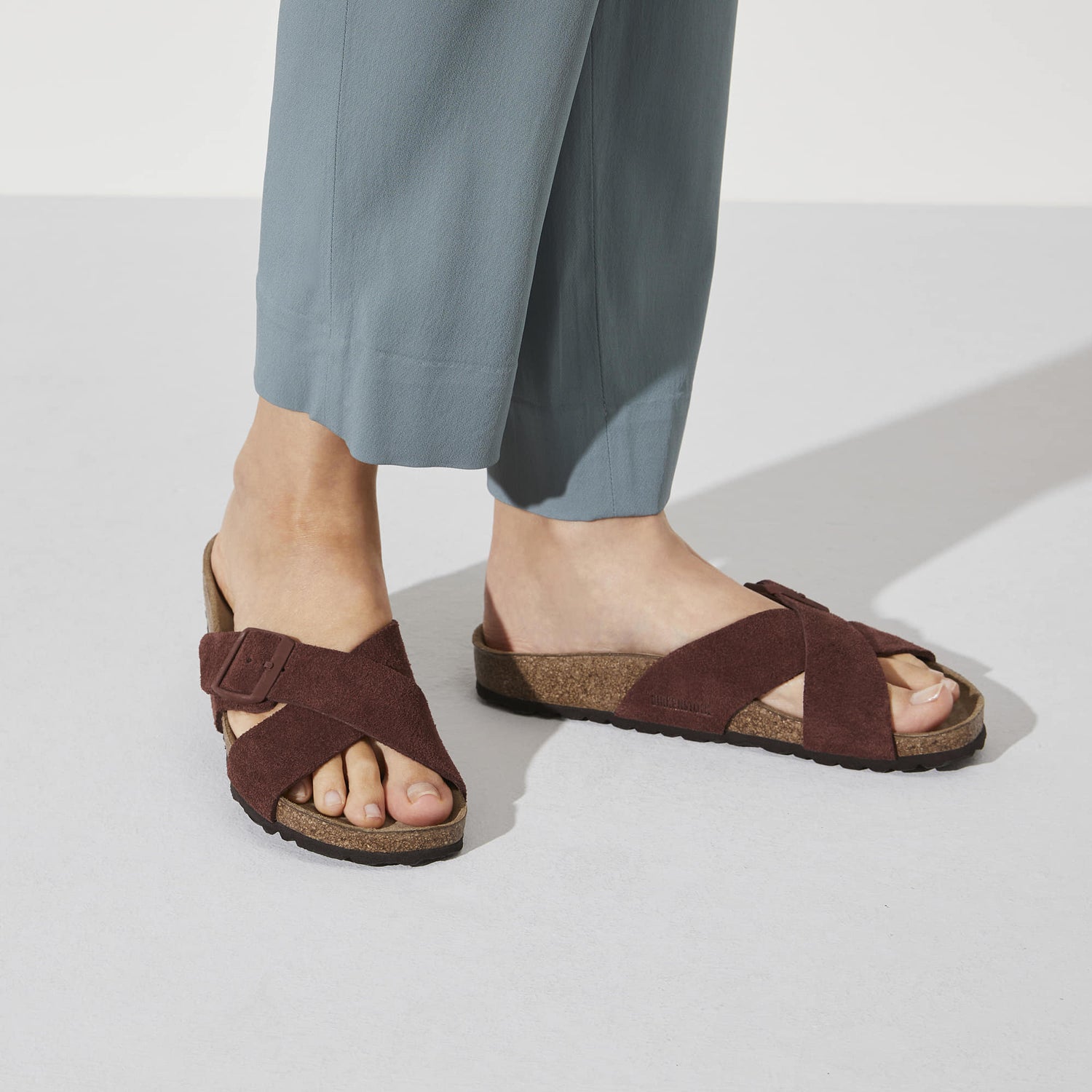 The BIRKENSTOCK Siena boasts a refined appearance. Crossed straps give the sandal its unique and special look. The color-coordinated buckles with a textile feel and a matte design are additional eye-catchers. With its additional foam layer, the soft footbed offers extra comfort and pampers feet all day long. Its natural design is down to the upper made from especially soft suede, which hugs the foot like a second skin.