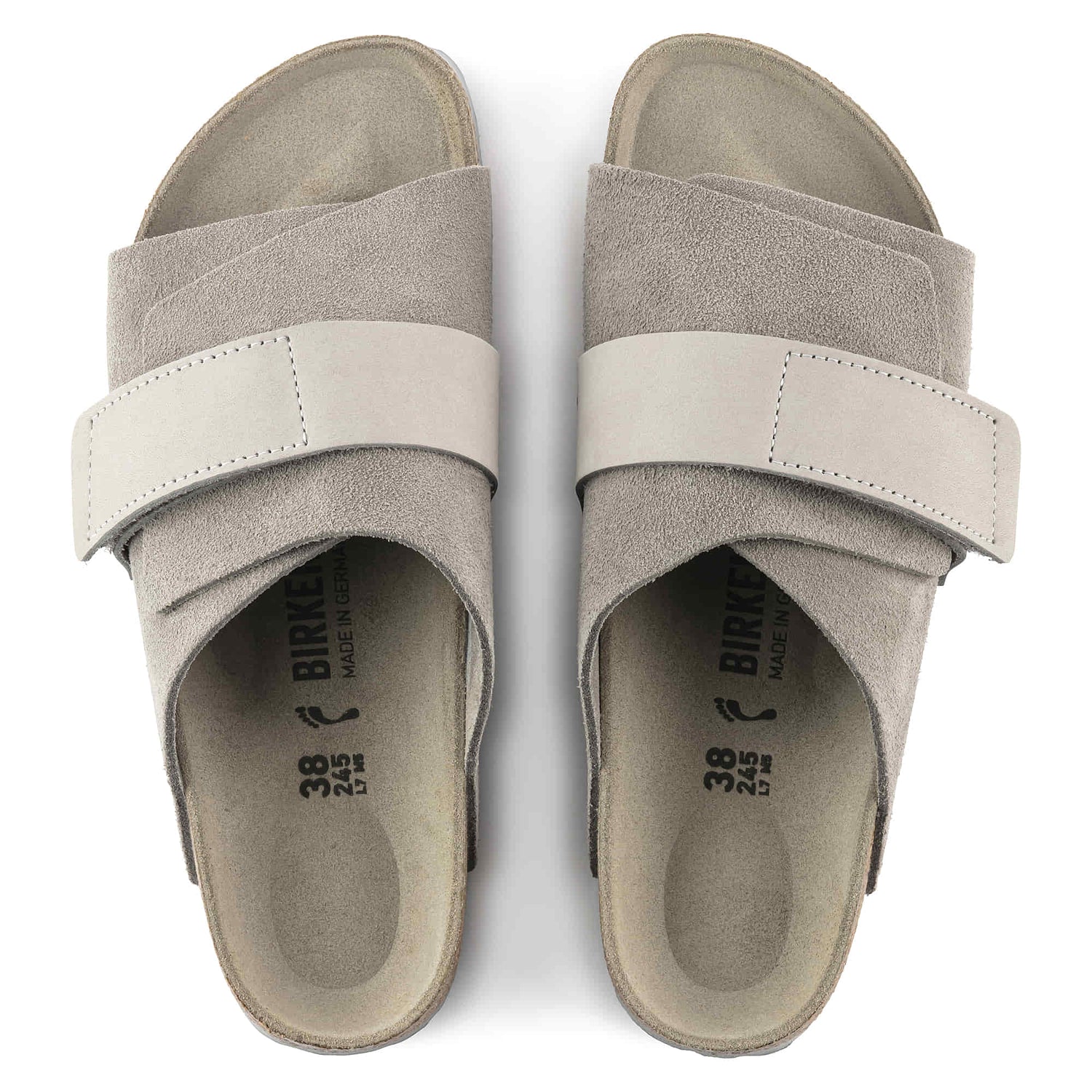 The casual BIRKENSTOCK Kyoto takes its inspiration from the classic Zurich model and stands out with its compact design and individually adjustable buckle. This offers optimum grip and is complemented by two decorative rivets. The color-coordinated outsole rounds off the shoes look of sophistication. The upper is made from especially soft suede in combination with high-quality nubuck leather.