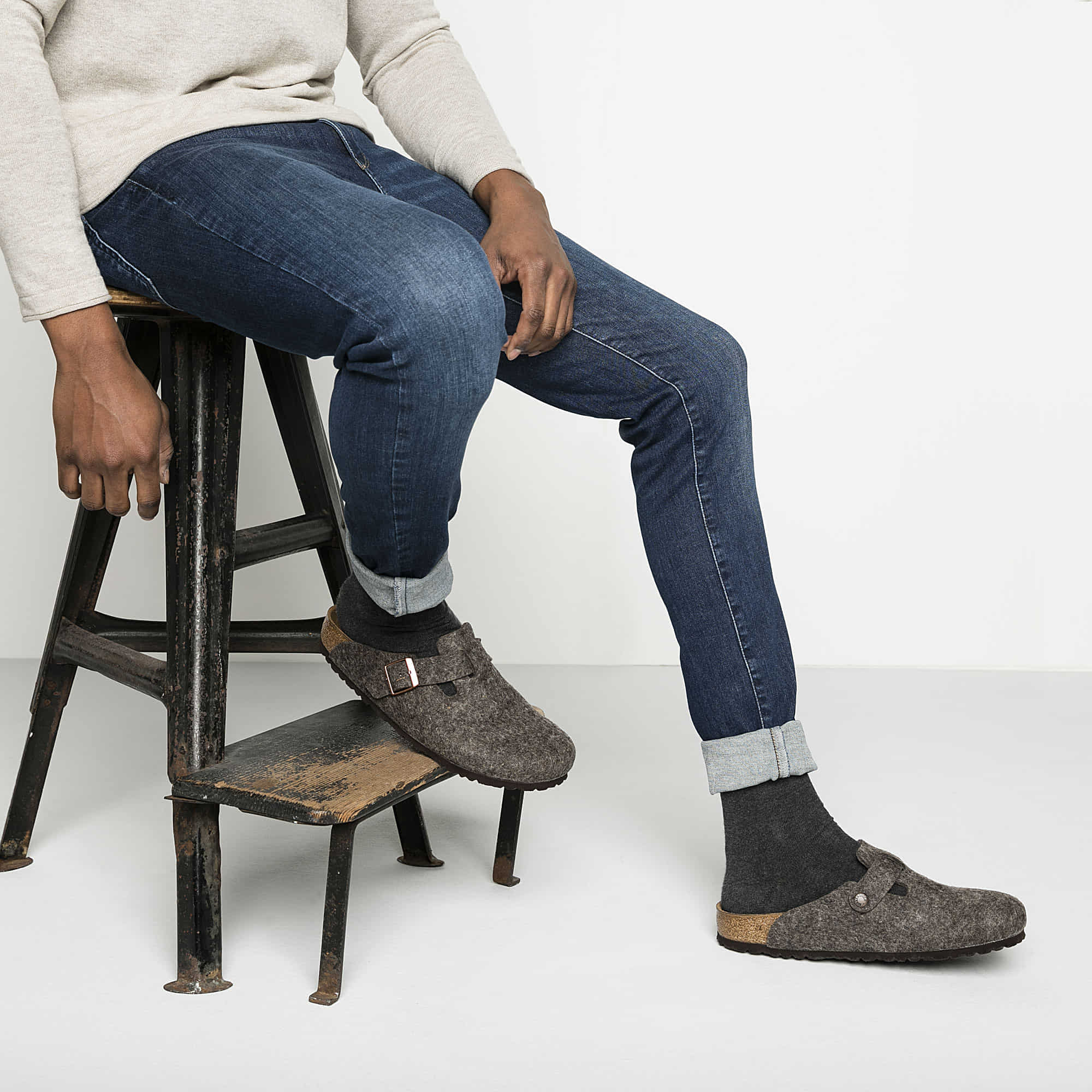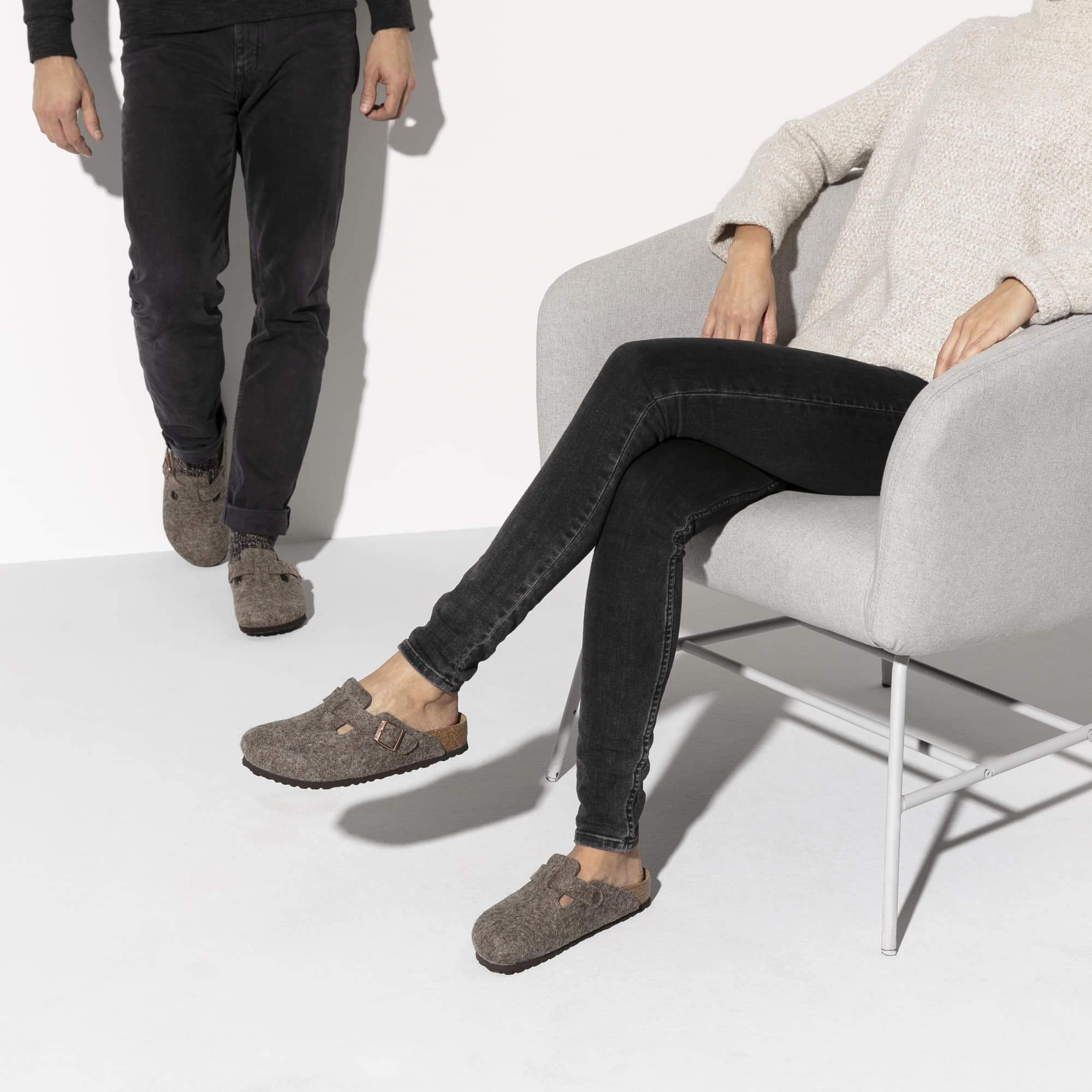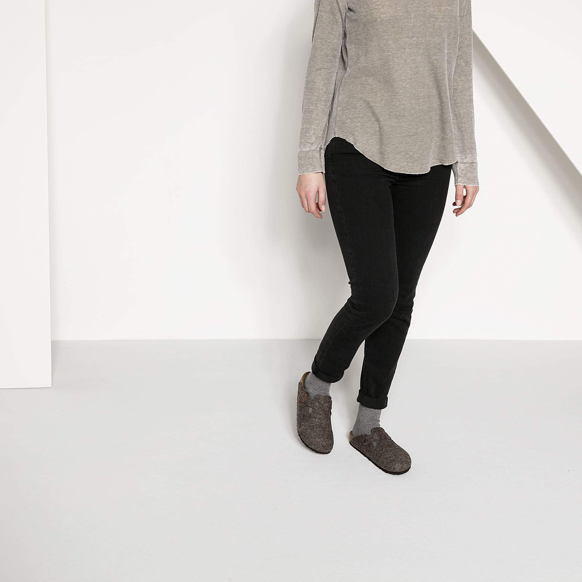 This version of the Boston clog, a classic BIRKENSTOCK model, comes with a shaft in soft, high-quality woolen felt. The clog can be adapted to all feet thanks to a strap on the upper edge of the shaft and a sturdy metal buckle.