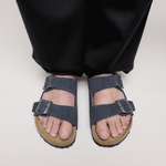 The BIRKENSTOCK Arizona is a genuine classic that has been delighting both men and women for decades. This simple sandal with two straps stands for timeless design and has long held cult status thanks to its comfort factor. The upper is made from especially soft suede which hugs the foot like a second skin. The two straps are made from extra thick, oiled nubuck leather with an open-selvage finish.
