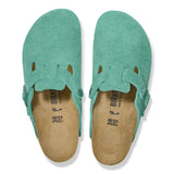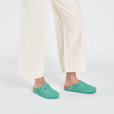 The BIRKENSTOCK Boston clog is a veritable classic that can easily be worn all year round. The color-coordinated buckles with a textile feel and a matte design as well as the color-coordinated outsole are additional eye-catchers. The upper is made from soft suede.