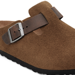 The BIRKENSTOCK Boston is a veritable classic that can easily be worn all year round. The Boston has a legendary status thanks to its sophisticated, individually adjustable design. The upper is made from especially soft suede which hugs the foot like a second skin. The strap is made from extra thick, oiled nubuck leather with an open-selvage finish.