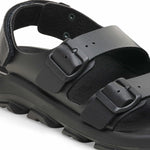 The BIRKENSTOCK Mogami is the perfect match for adventures of any kind thanks to the waterproof footbed with toe protection and the highly functional sole which is injected into the footbed and upper in two layers. This makes the sandal extremely flexible and durable in any terrain. The polyurethane sole is affixed to the footbed in two layers and therefore offers maximum flexibility, grip, and durability. The upper is made from the skin-friendly, hard-wearing synthetic material Birko-Flor®.