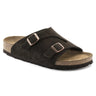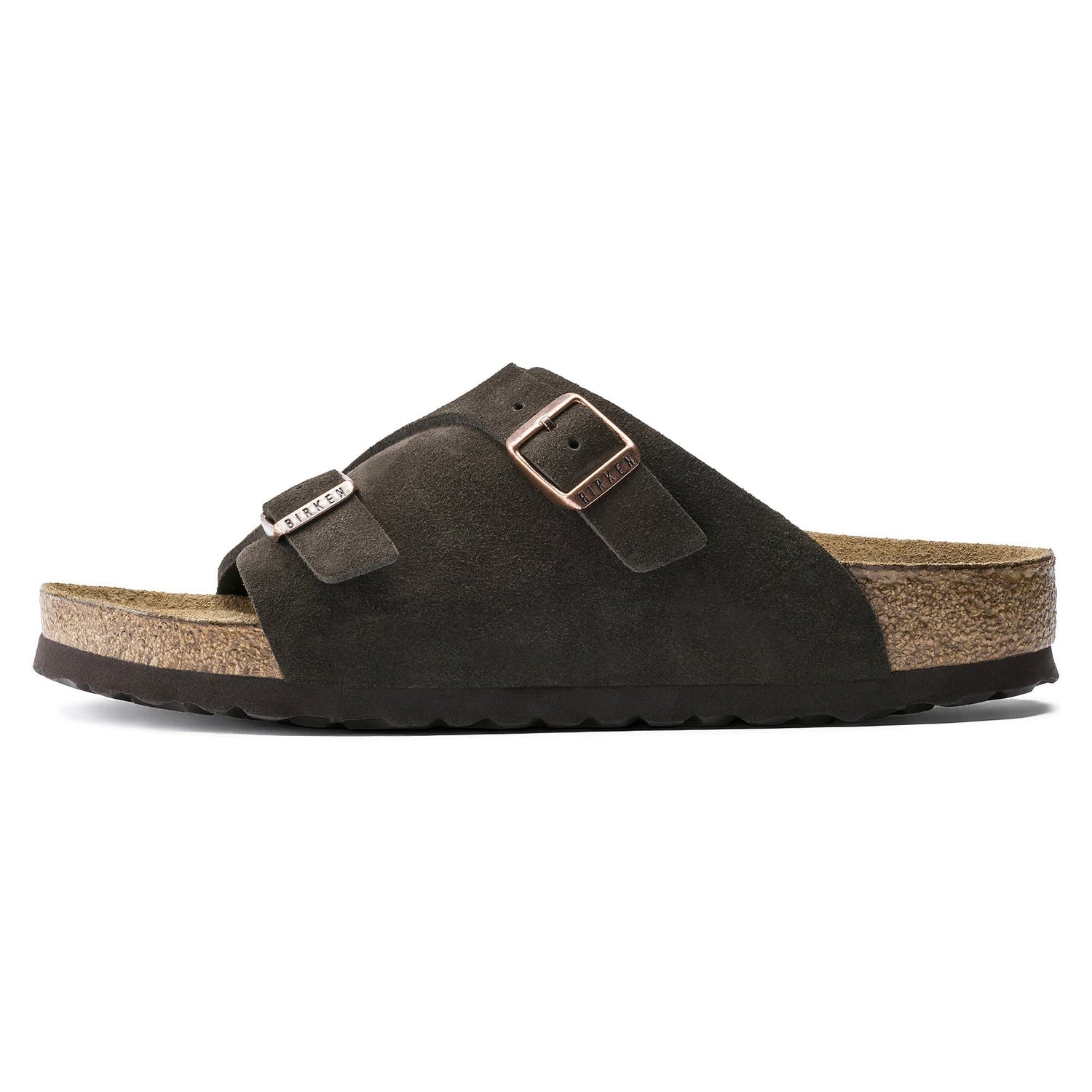The BIRKENSTOCK Zurich Suede Leather Beige and Brown sandal model combines the stability of a closed-toe shoe with the lightness of a sandal and is popular in equal measure among both men and women. Although closed at the sides, this version is open at the toes and heel to ensure the feet get enough fresh air.