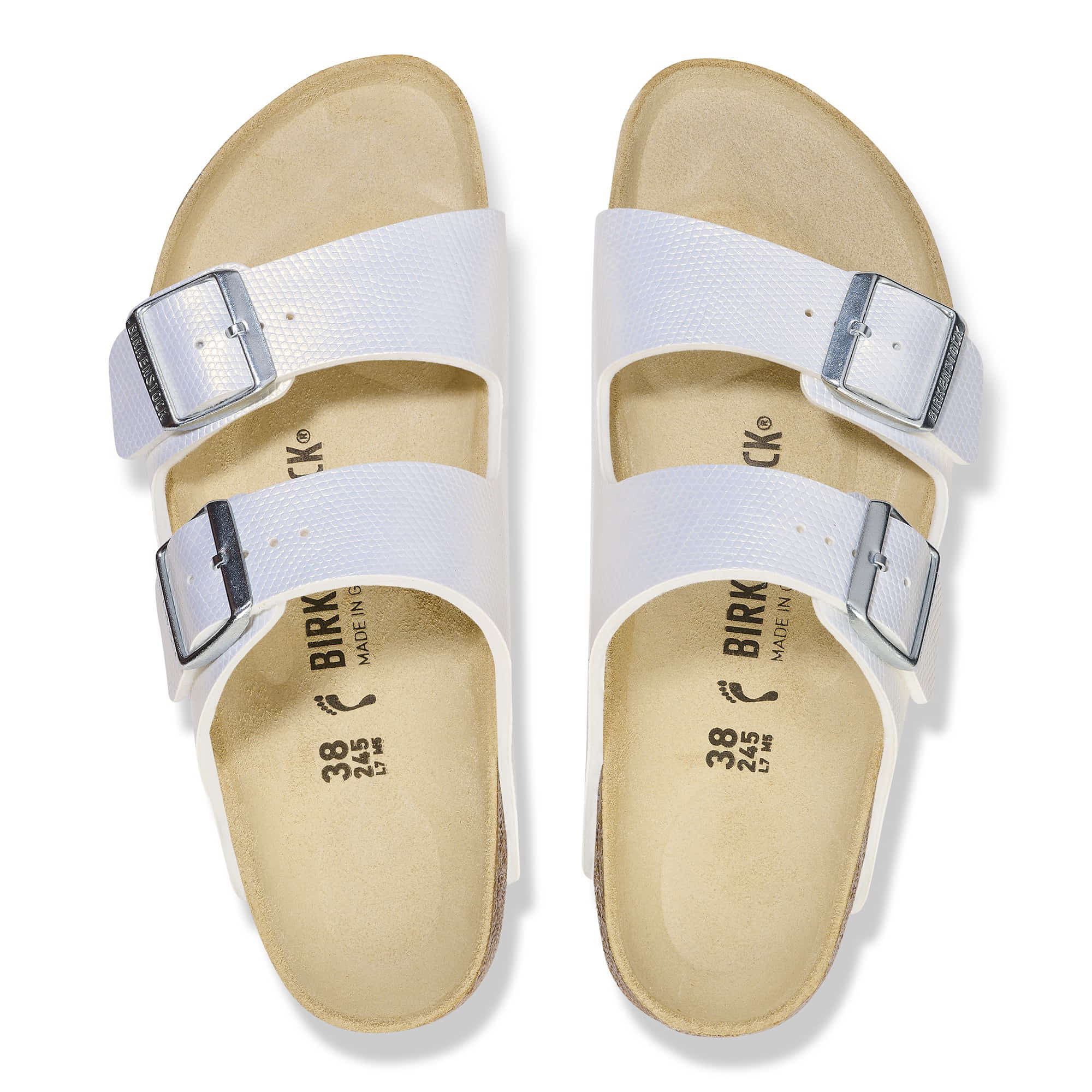 The BIRKENSTOCK Arizona is a genuine classic that has been delighting both men and women with its timeless design for decades. This version comes in a shiny lizard design and exudes elegance and a touch of extravagance thanks to the iridescent metallic foil and the reptile skin look. Inspired by nature, no two shoes have the same look and feel. The upper is made from the skin-friendly, hard-wearing synthetic material Birko-Flor®, which has been embossed.