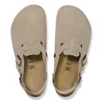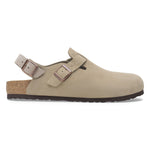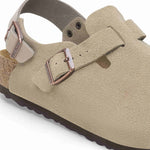 The BIRKENSTOCK Tokio clog is a variation of the classic Boston. The model is characterized by its ankle strap and can easily be worn any time of the year. The upper is made from especially soft suede which hugs the foot like a second skin.