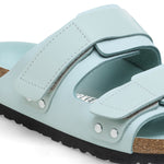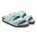 The casual BIRKENSTOCK Uji is refreshingly sporty and stands out with its practical individually adjustable fasteners. It€™s great for anyone who likes to combine sporty looks with their everyday outfits. The shiny closures are sophisticated eye-catchers. The semi-exquisite footbed is fully lined with soft piumato leather, making it exceptionally comfortable. The upper is made from high-quality, soft nubuck leather that boasts a natural, rustic appearance.