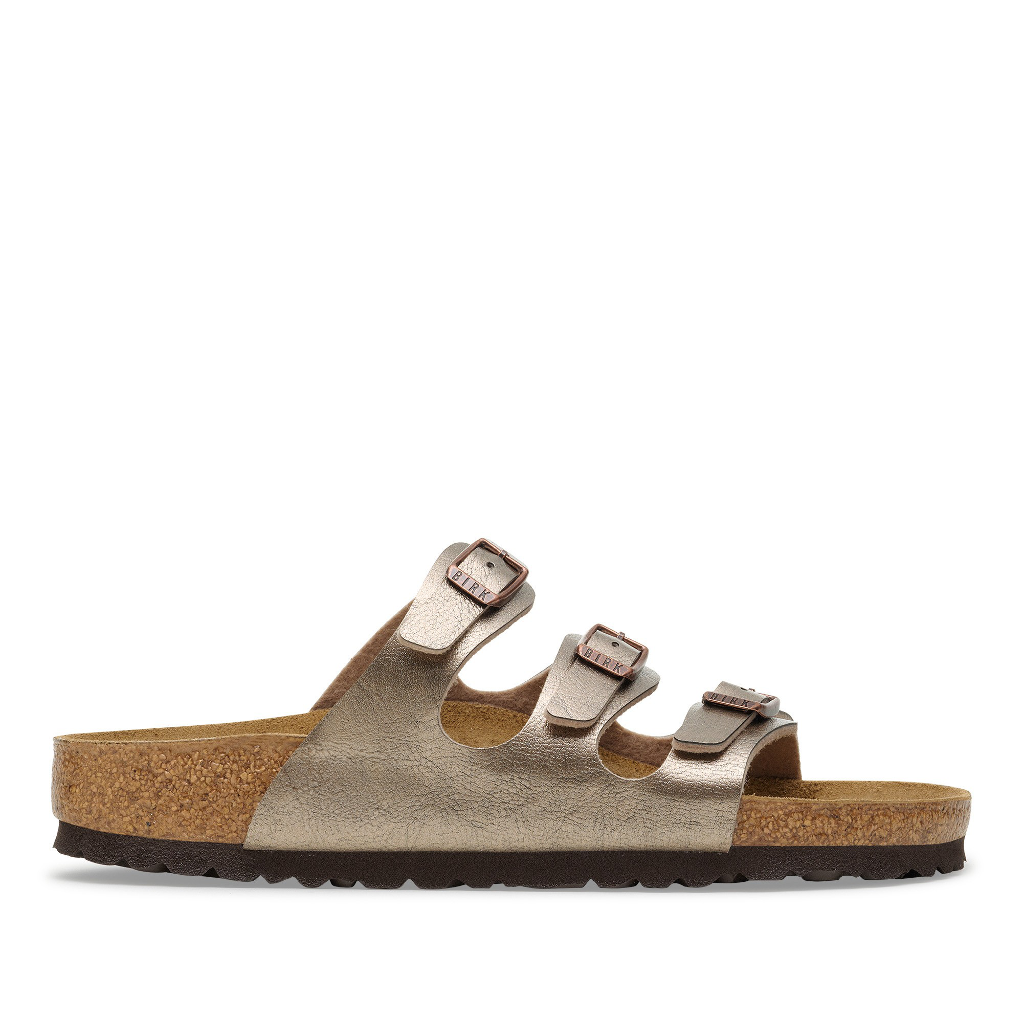 The BIRKENSTOCK Florida is the ideal sandal for anyone who spends a lot of time on their feet. This three-strap sandal offers good grip and maximum comfort. This sandal version has a silky sheen finish. The upper is made from the skin-friendly, hard-wearing synthetic material Birko-Flor ®.