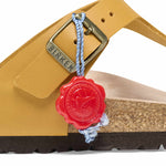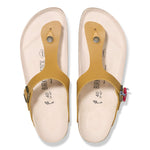 The BIRKENSTOCK Gizeh is a genuine classic and a stylish all-rounder. Our elegant thong sandal combines optimum grip with minimalist, fashionable design. We are now giving this popular classic the opportunity to show off its original design in our anniversary collection. With its buckles, the footbed stamp, the outsole, and the packaging, the sandal replicates the 1983 original and exudes veritable retro flair. The upper is made from soft, oiled natural leather.