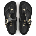 - Details: thong with a large, individually adjustable metal pin buckle
