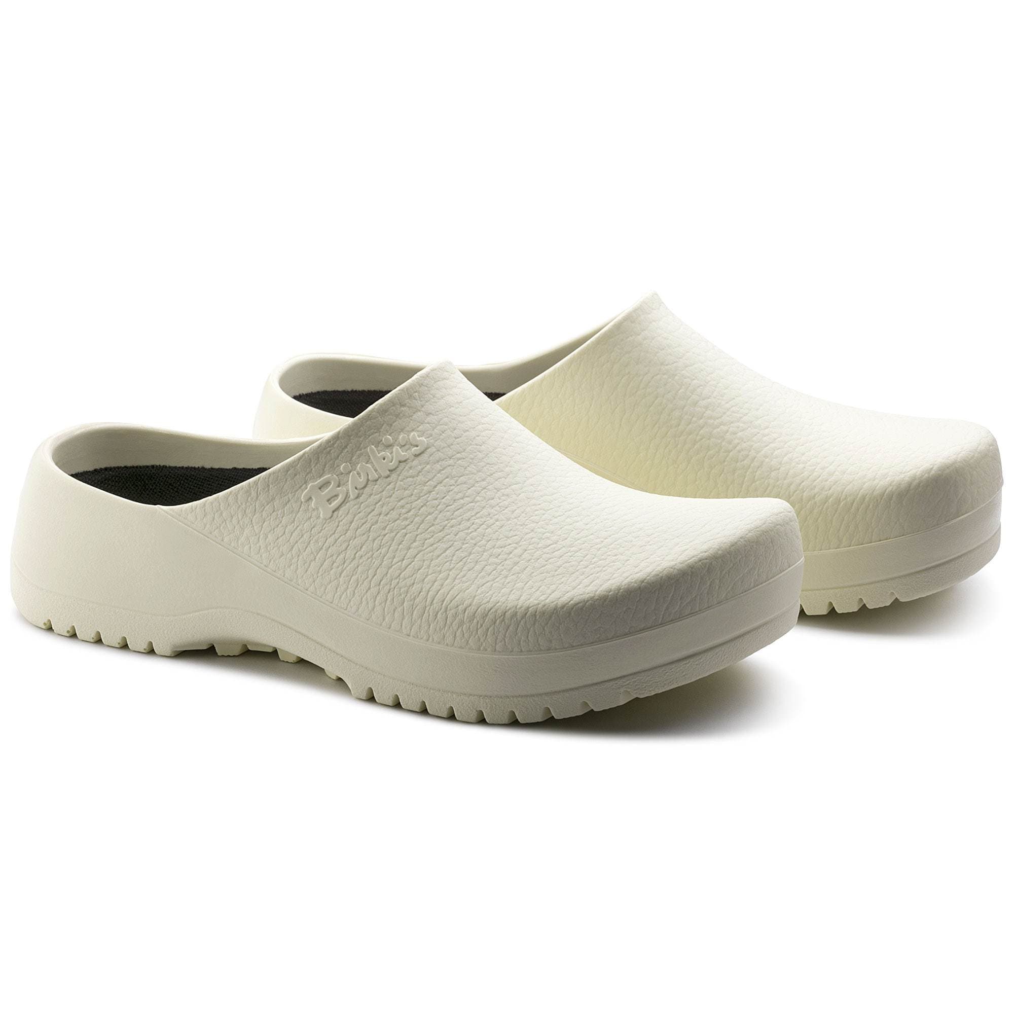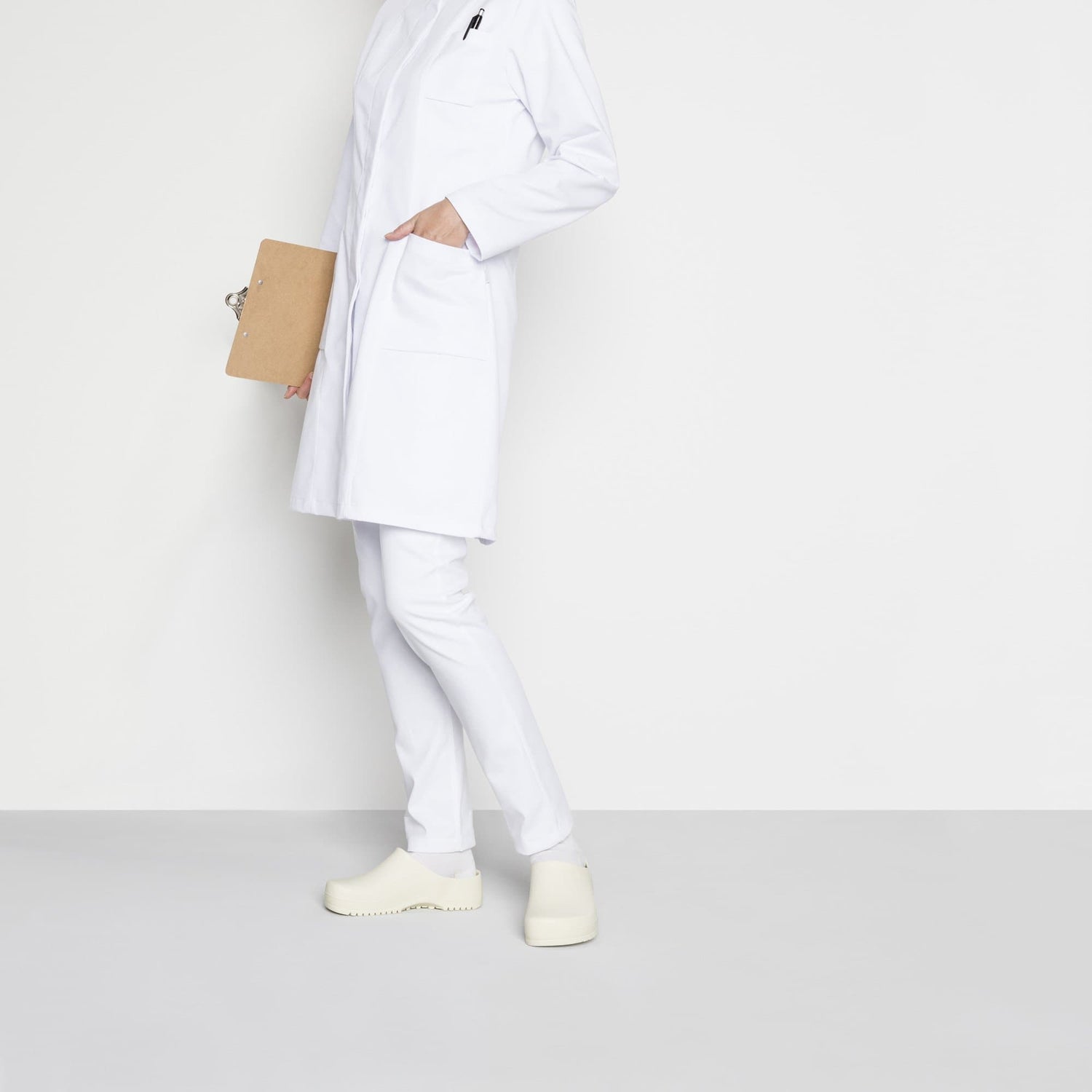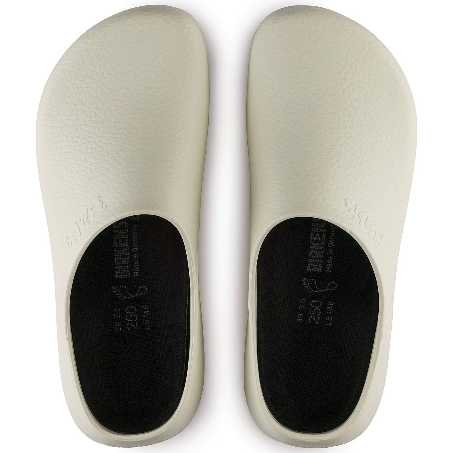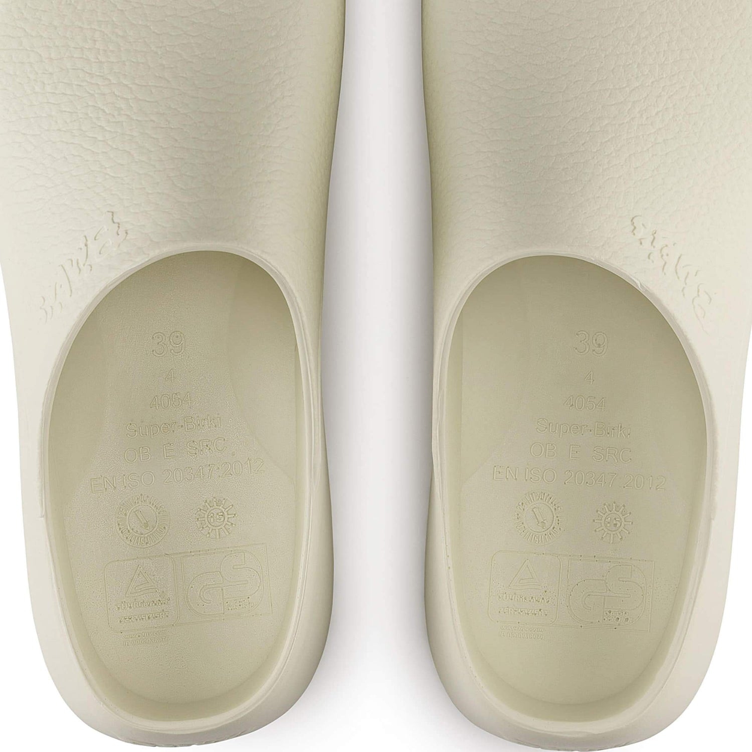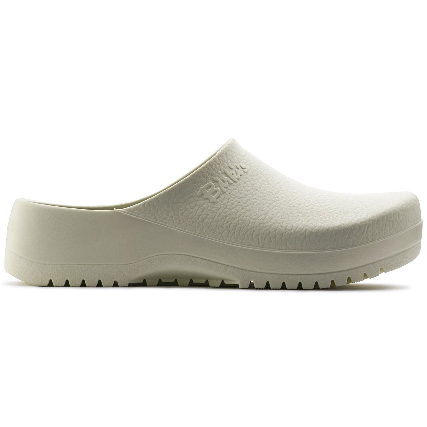 The wide array of colors that the Super Birki is available in makes it highly versatile for use in all sorts of occupational and private settings. This compact shoe made from water-resistant and dirt-repellent polyurethane is also oil- and grease-resistant. This extremely resilient material is washable at up to 60° Celsius and can be efficiently disinfected. Its resilience and its hygiene properties make it ideal for kitchens, medical environments, and the food industry while it can equally serve as a practical garden clog. The anatomically shaped cork-latex footbed is lined with a moisture-wicking fabric. It can be removed for easy cleaning and is washable at up to 30° Celsius. All Super Birki models are certified in accordance with EN ISO 20347:2012 OB E (SRC category).