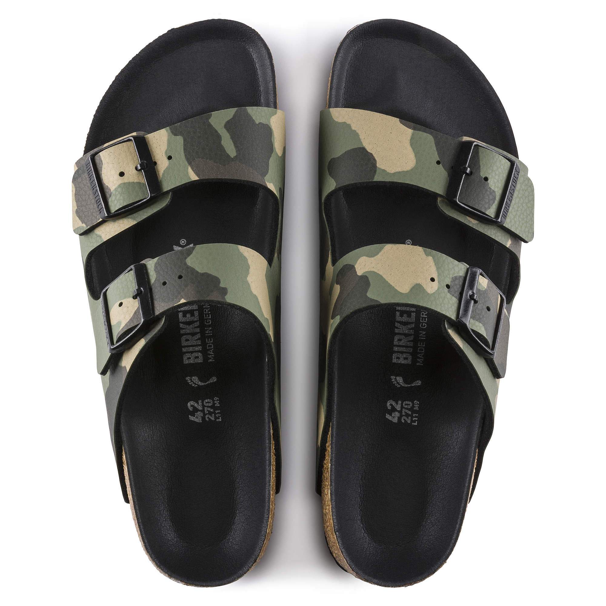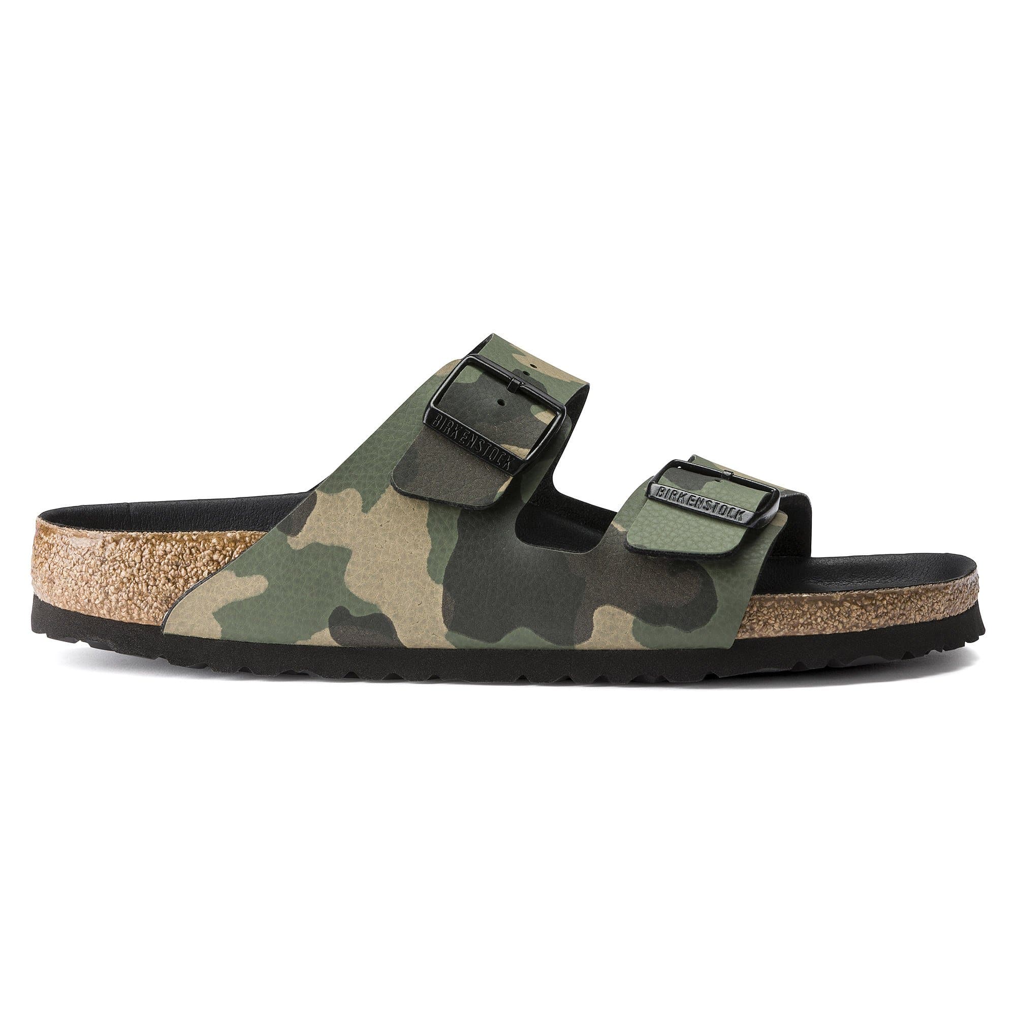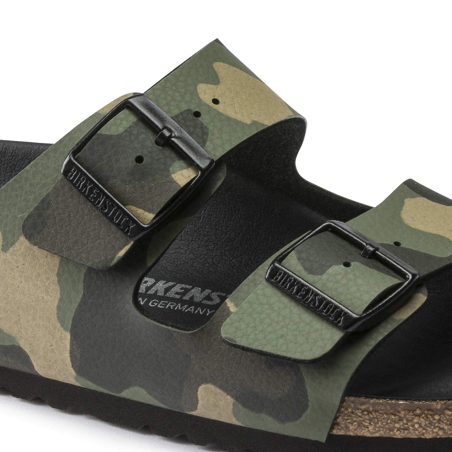 The BIRKENSTOCK Arizona Birko Flor Green and Black sandal is a genuine classic that has been delighting both men and women with its timeless design for decades. This version boasts a reinterpreted urban camouflage look with a geometrical print. The upper is made of the skin-friendly, hard-wearing synthetic material Birko-Flor®.