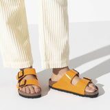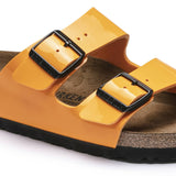 The BIRKENSTOCK Arizona Birko-Flor Patent Orange sandals a genuine classic that has been delighting both men and women for decades. This simple sandal with two straps stands for timeless design and has long held cult status thanks to its comfort factor. The upper is made from the skin-friendly, hard-wearing synthetic material Birko-Flor with a shiny patent coating.