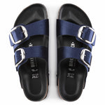 • Details: two straps, each with a big, individually adjustable metal pin buckle; color-coordinated footbed