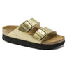 The BIRKENSTOCK Arizona Platfrom Birko-Flor Gold sandal is a genuine classic that has been delighting both men and women for decades. Here, Papillio presents the two-strap sandal with a trendy platform sole. The bevel results in maximum walking comfort. This sandal was reinterpreted in an extravagant metallic look. The reflective film makes this classic model dazzle and is sure to make any outfit turn heads. The upper is made from the skin-friendly, hard-wearing synthetic material Birko-Flor®.