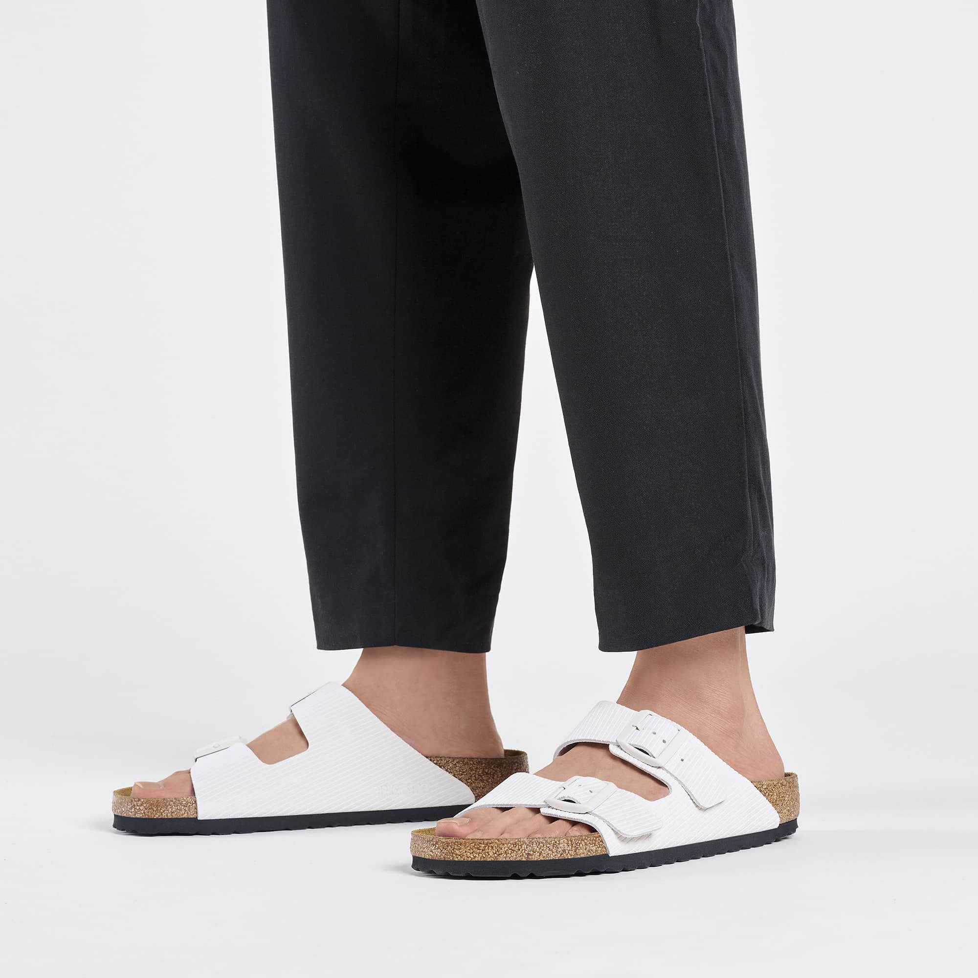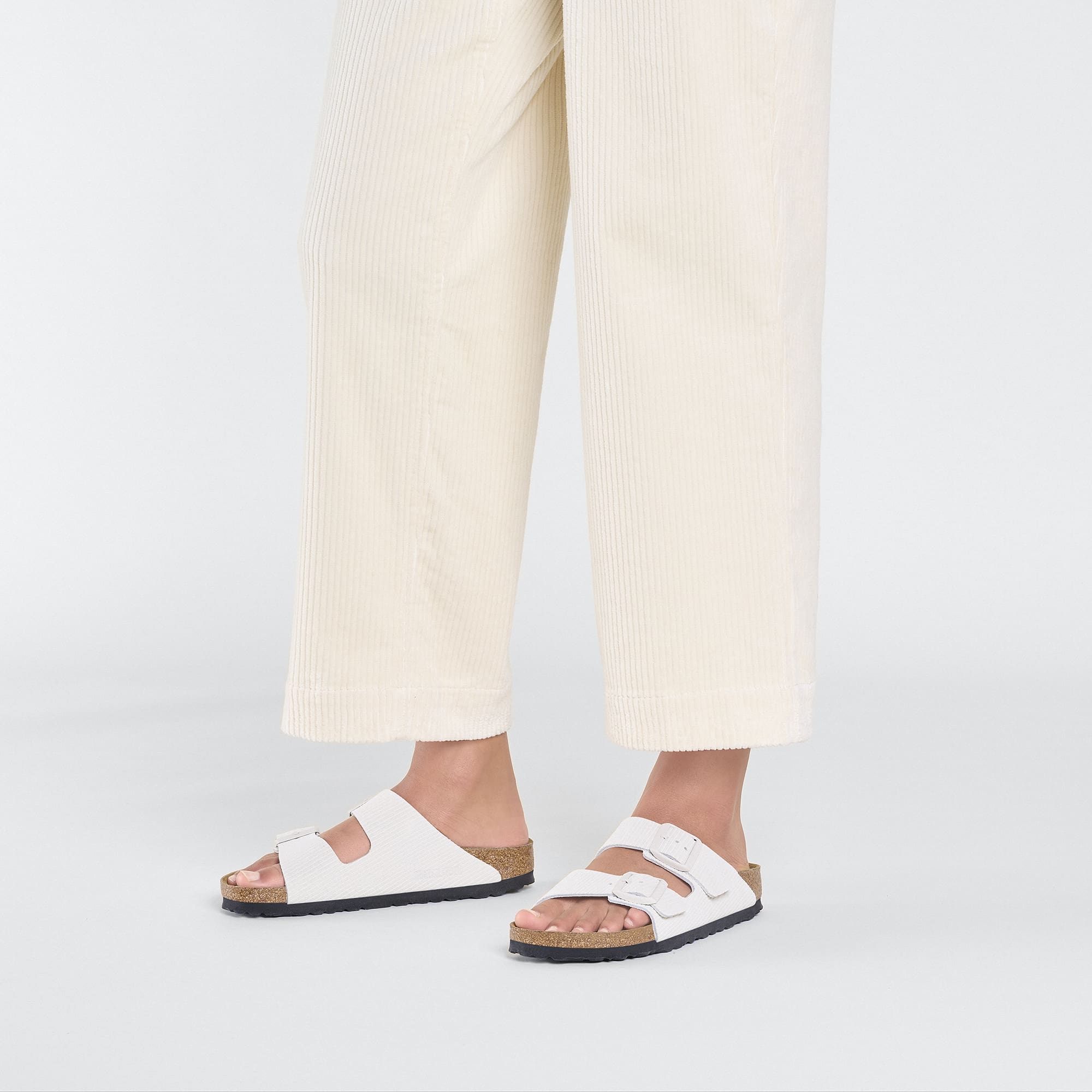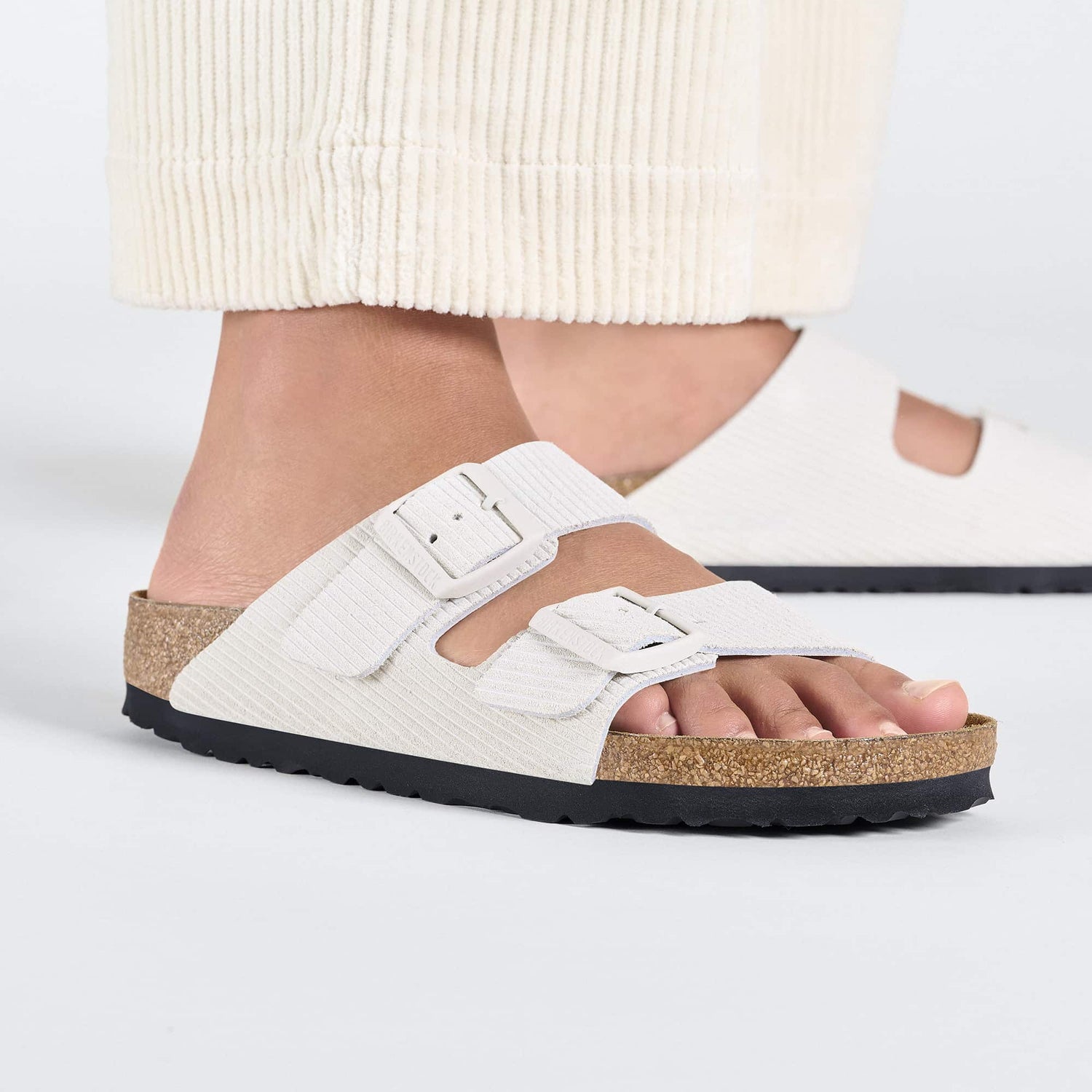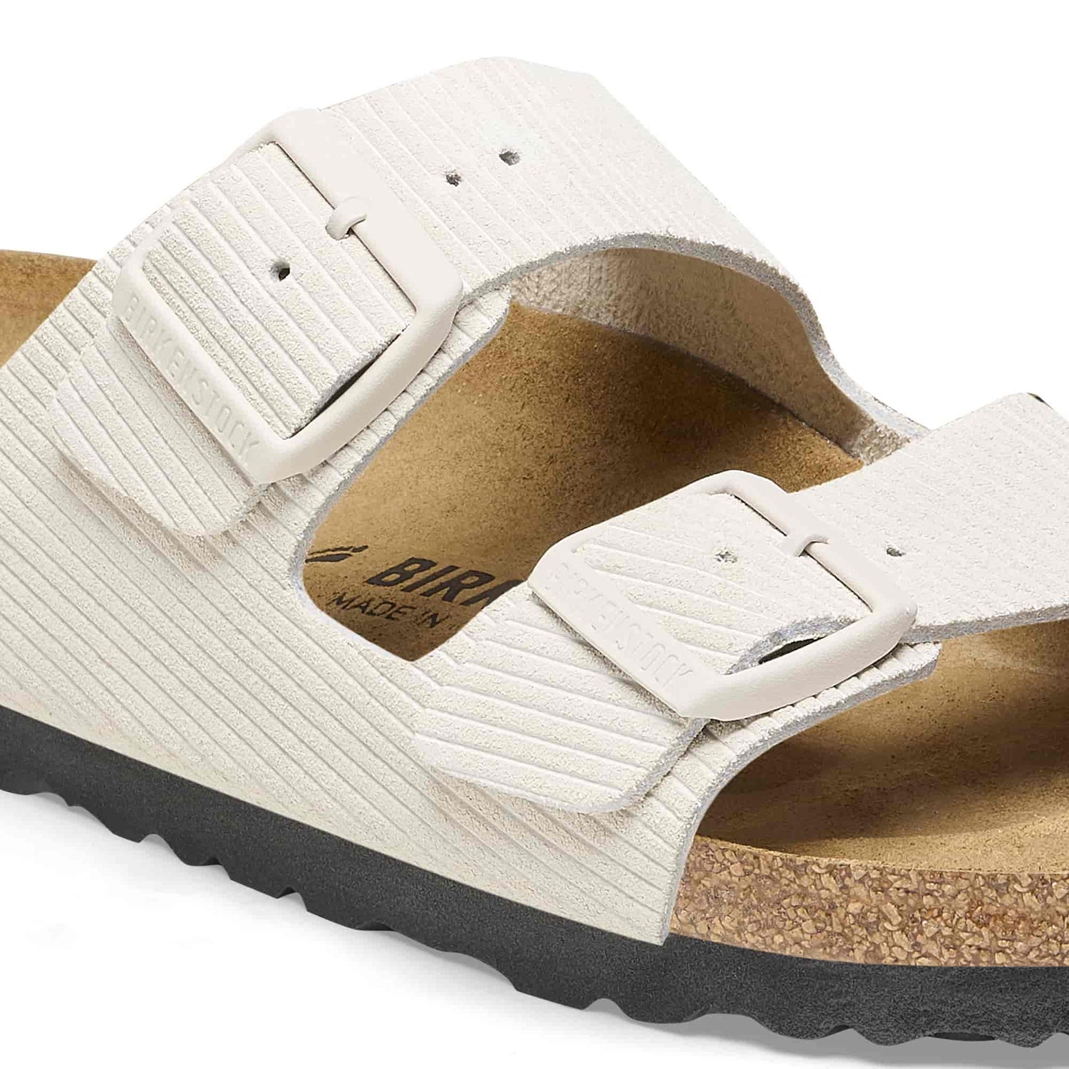 The BIRKENSTOCK Arizona is a genuine classic that has been delighting both men and women with its timeless design for decades. This version boasts a casual corduroy style. Perfect for authentic streetstyle outfits! The color-coordinated buckles with a textile feel and a matte design are additional eye-catchers. The upper is made from soft, embossed suede.