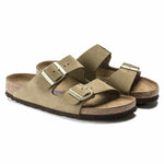 The BIRKENSTOCK Arizona is a genuine classic. This individually adjustable unisex two-strap sandal is now available in a uniquely sophisticated nubuck leather version. The leather features an open selvedge finish, emphasizing the handcrafted and natural look of these stylish sandals. The soft and comfortable footbed provides extra comfort.