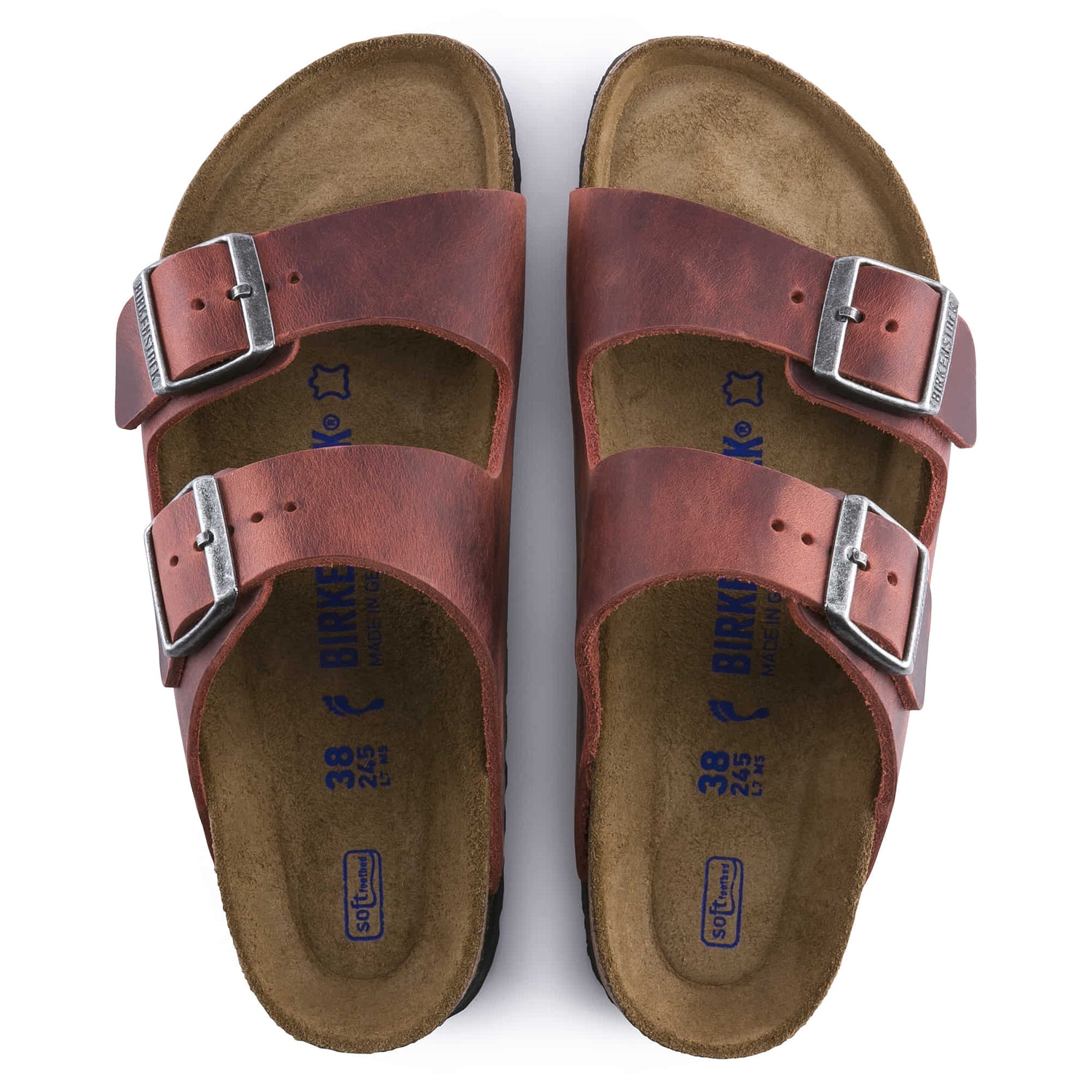 Oiled leather can be recognized by its untreated surface. BIRKENSTOCK purposely does not treat surface grains and other characteristic features. BIRKENSTOCK uses sturdy leather with a thickness of 2.8 to 3.2 millimeters as upper material.