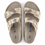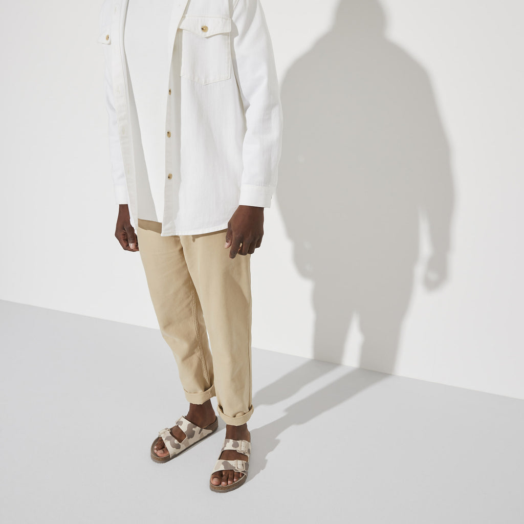 The BIRKENSTOCK Arizona is a genuine classic that has been delighting both men and women with its timeless design for decades. The upper is made from the skin-friendly, hard-wearing synthetic material Birko-Flor®. This version of the sandal is tone-on-tone, giving it a trendy camouflage look. It could almost be mistaken for real leather. With its additional foam layer, the soft footbed offers extra comfort and pampers feet all day long.