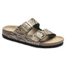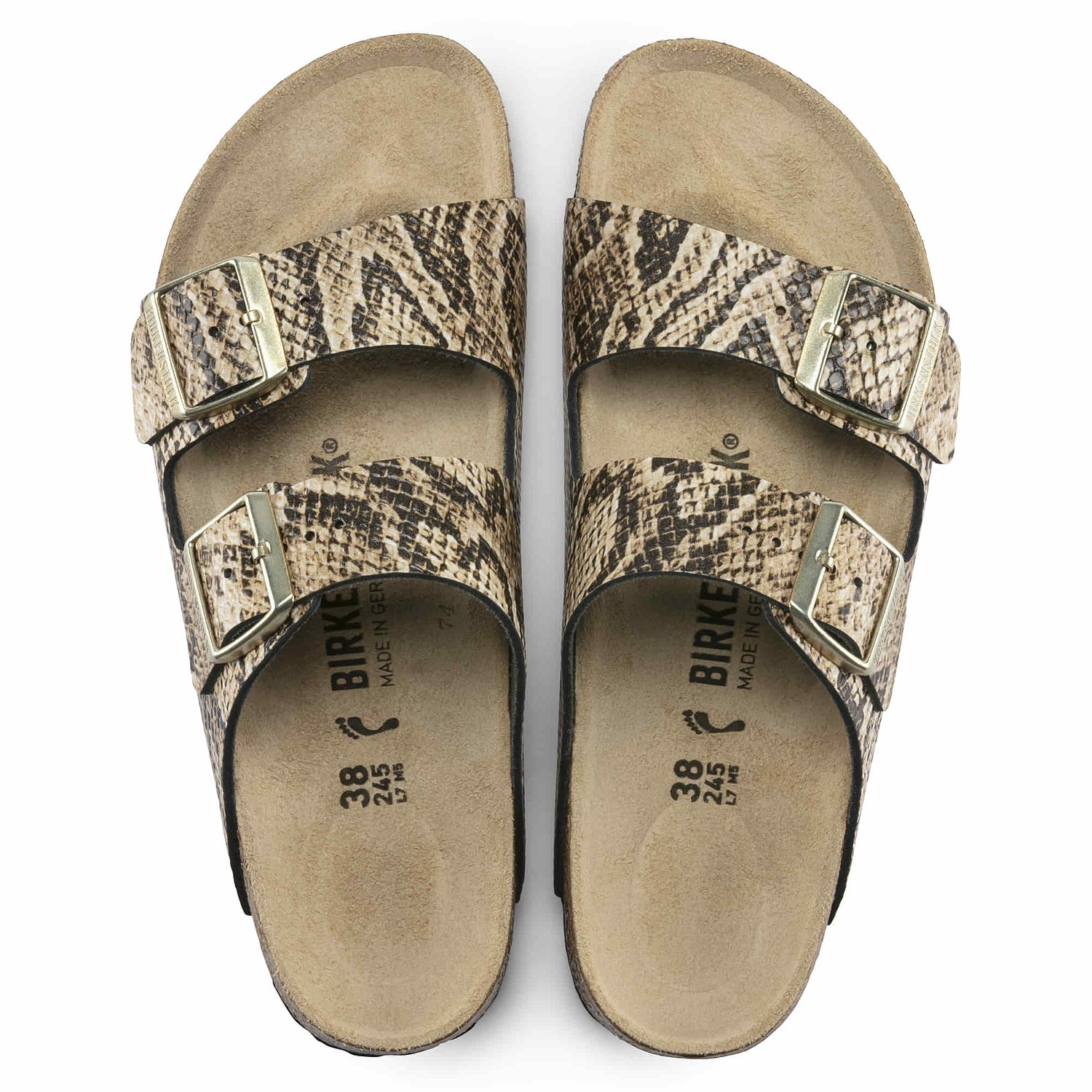 The BIRKENSTOCK Arizona is a genuine classic that has been delighting both men and women with its timeless design for decades. This version stands out thanks to its extravagant snakeskin pattern with a shiny surface. Inspired by nature, no two shoes have the same look and feel. The lining of the semi-exquisite footbed is covered with soft smooth leather and matches the shoe in color. The color-coordinated pin buckles round off the shoe"s look of sophistication. The upper is made from embossed natural leather.