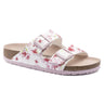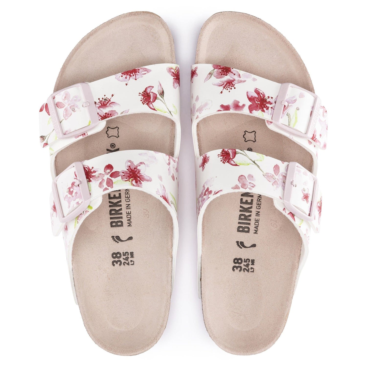 The BIRKENSTOCK Arizona is a genuine classic that has been delighting both men and women with its timeless design for decades. This version sports a look inspired by Valentine Day and impresses with its feminine design. The color-coordinated footbed and the colorful tongue buckles round off the shoe look of sophistication. The upper is made from the skin-friendly, hard-wearing synthetic material Birko-Flor®.