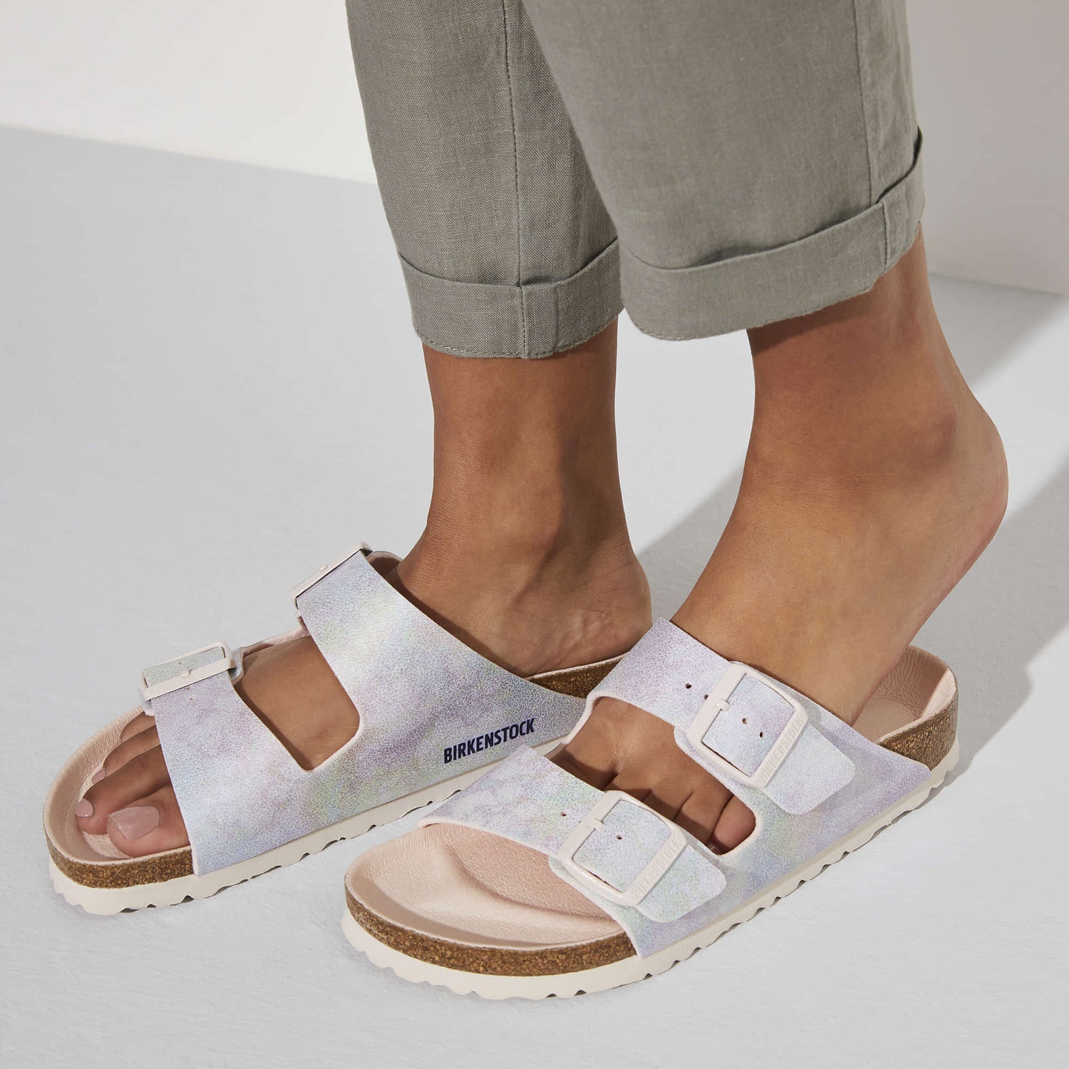 The BIRKENSTOCK Arizona is a genuine classic that has been delighting both men and women with its timeless design for decades. This version features an iridescent, silky sheen and sparkles in all colors of the rainbow. The color-coordinated details and buckles with a textile feel and a matte design round off the shoes look of sophistication. The upper is made from skin-friendly microfiber.