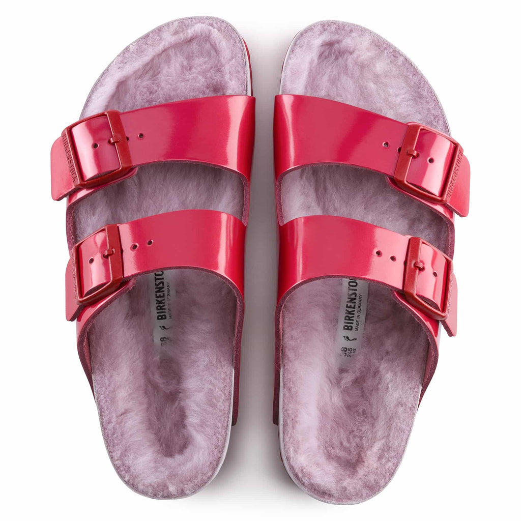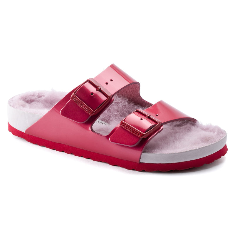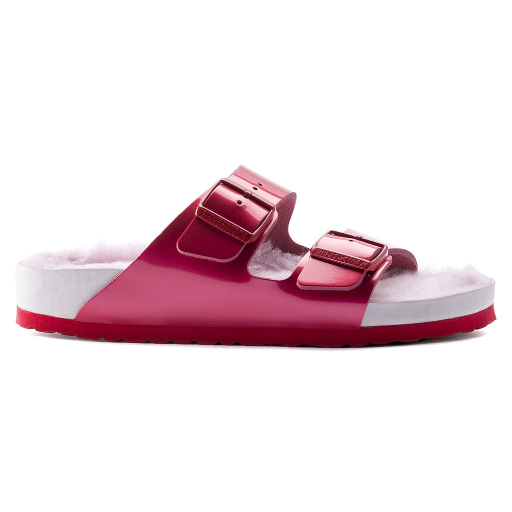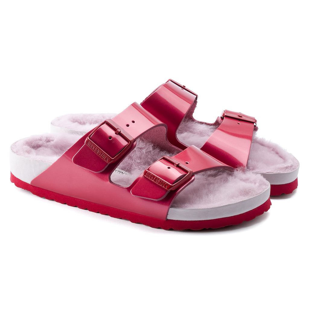 The legendary two-strap design from BIRKENSTOCK - the Arizona. Iconic style complemented with the signature comfort of the BIRKENSTOCK footbed. Special for Valentine's Day, shown in aniline leather with tone on tone outsole and colored shearling in sole.