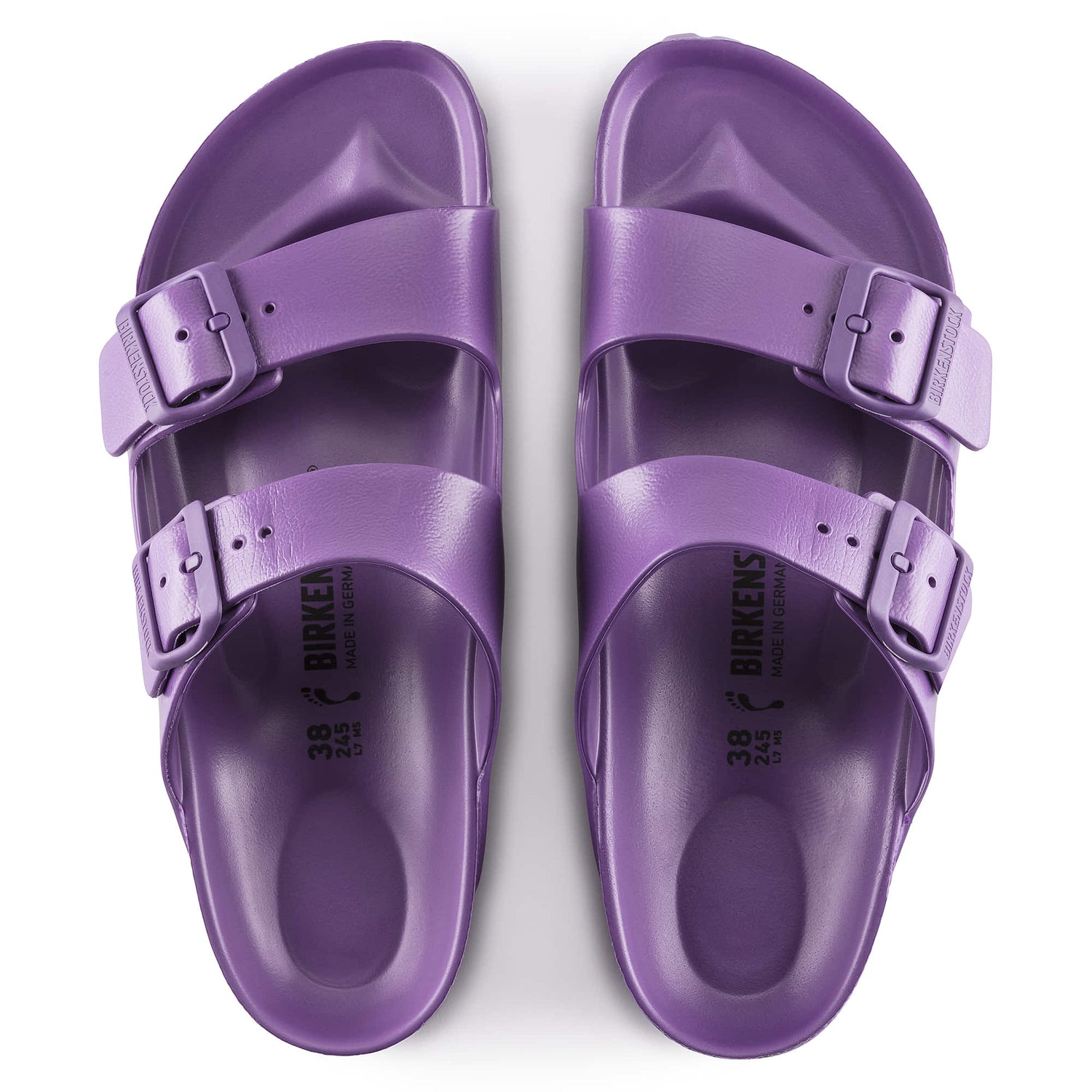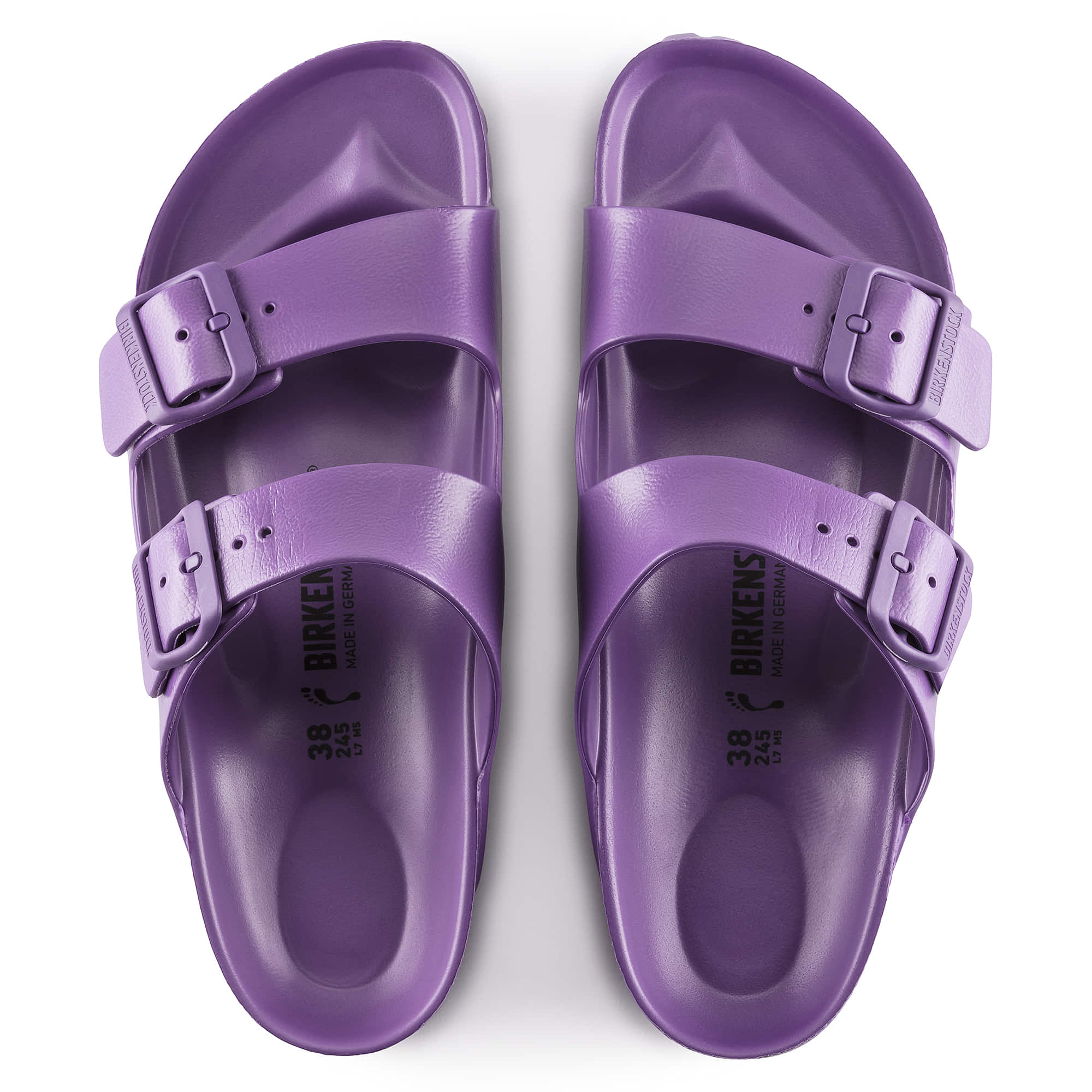 The legendary two-strap design from BIRKENSTOCK - the Arizona. Modeled on the cork original, this sandal is made from ultra lightweight and highly flexible EVA. These sandals are shock absorbing, waterproof, and skin-friendly. Wear them at the beach, in the garden, or around the gym and after workouts. It's the perfect addition to your classic BIRKENSTOCK sandals.