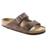The BIRKENSTOCK Arizona Soft Footbed Nubuck Leather Desert Buck Roast Sandals a genuine classic that has been delighting both men and women with its timeless design for decades. This version with its grained upper boasts a striking yet natural design. With its additional foam layer, the soft footbed offers extra comfort and pampers feet all day long. The upper is made from high-quality, soft nubuck leather that boasts a natural, rustic appearance.