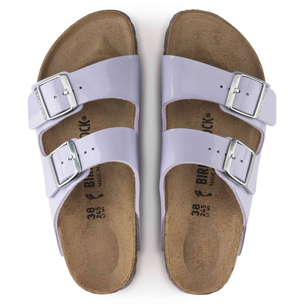 The BIRKENSTOCK Arizona is a genuine classic that has been delighting both men and women for decades. This simple sandal with two straps stands for timeless design and has long held cult status thanks to its comfort factor. The upper is made from the skin-friendly, hard-wearing synthetic material Birko-Flor® with a shiny patent coating.